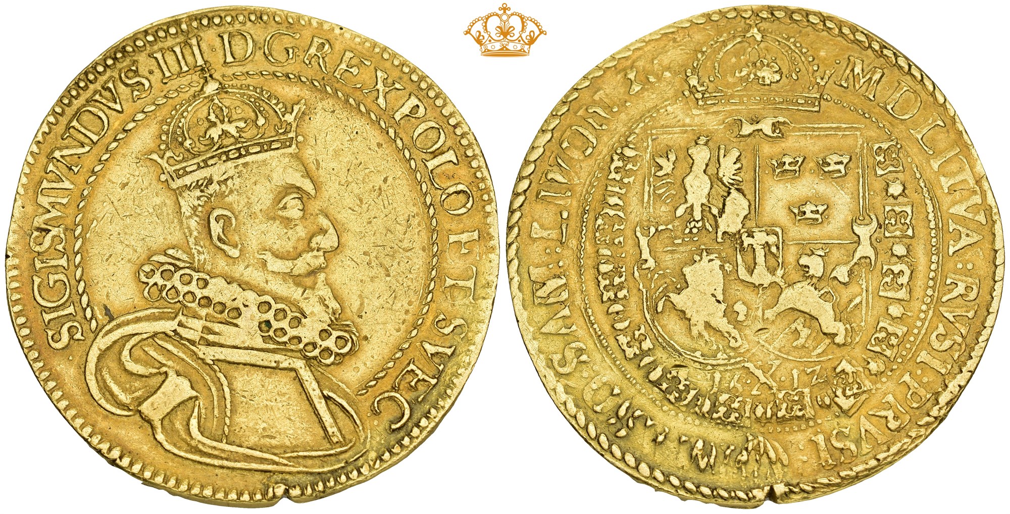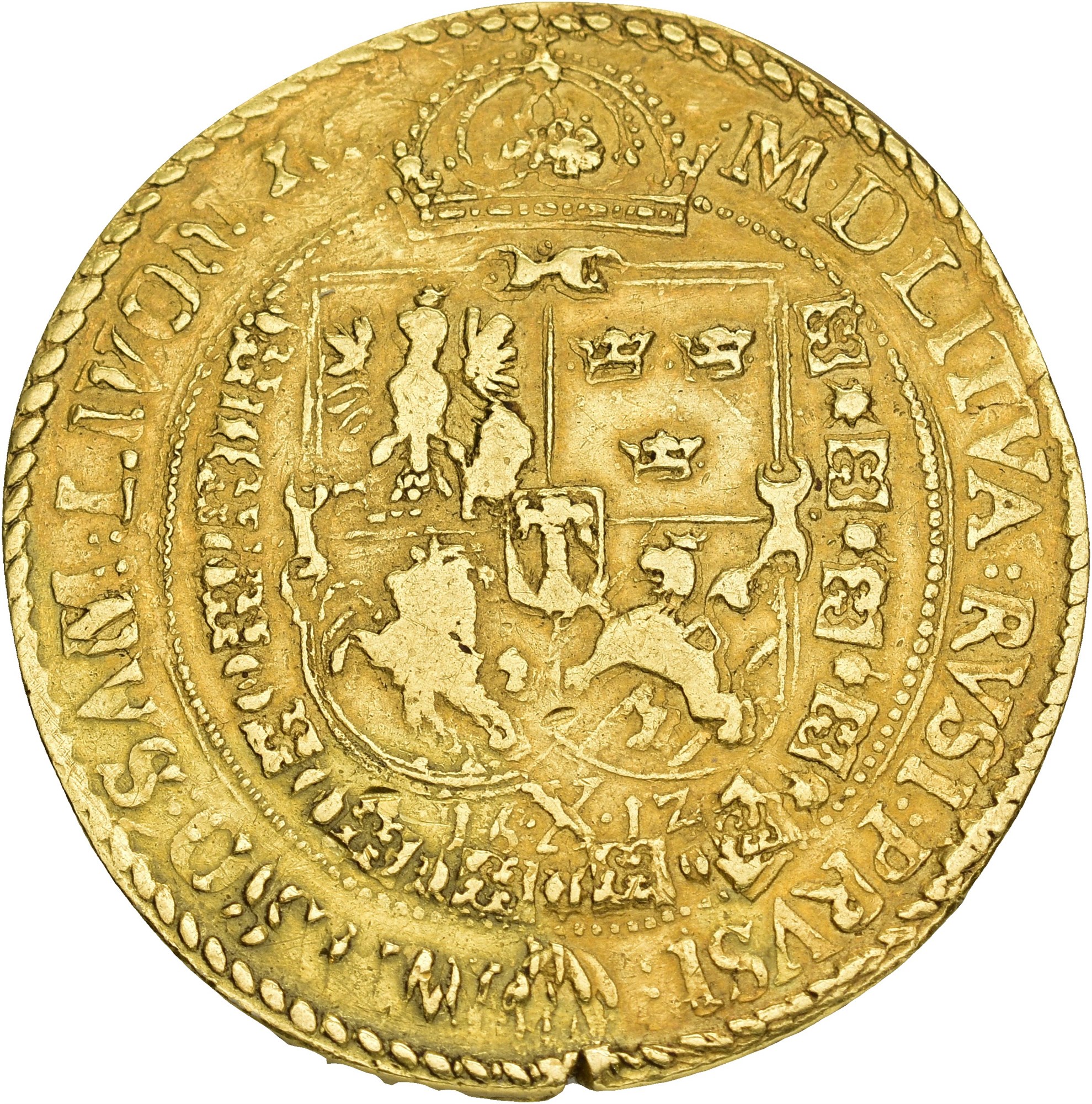 SIGISMVNDVS III D G REX POLO ET SVEC / M D LITVA RVSI PRVSI MASO SAM LIVON XC