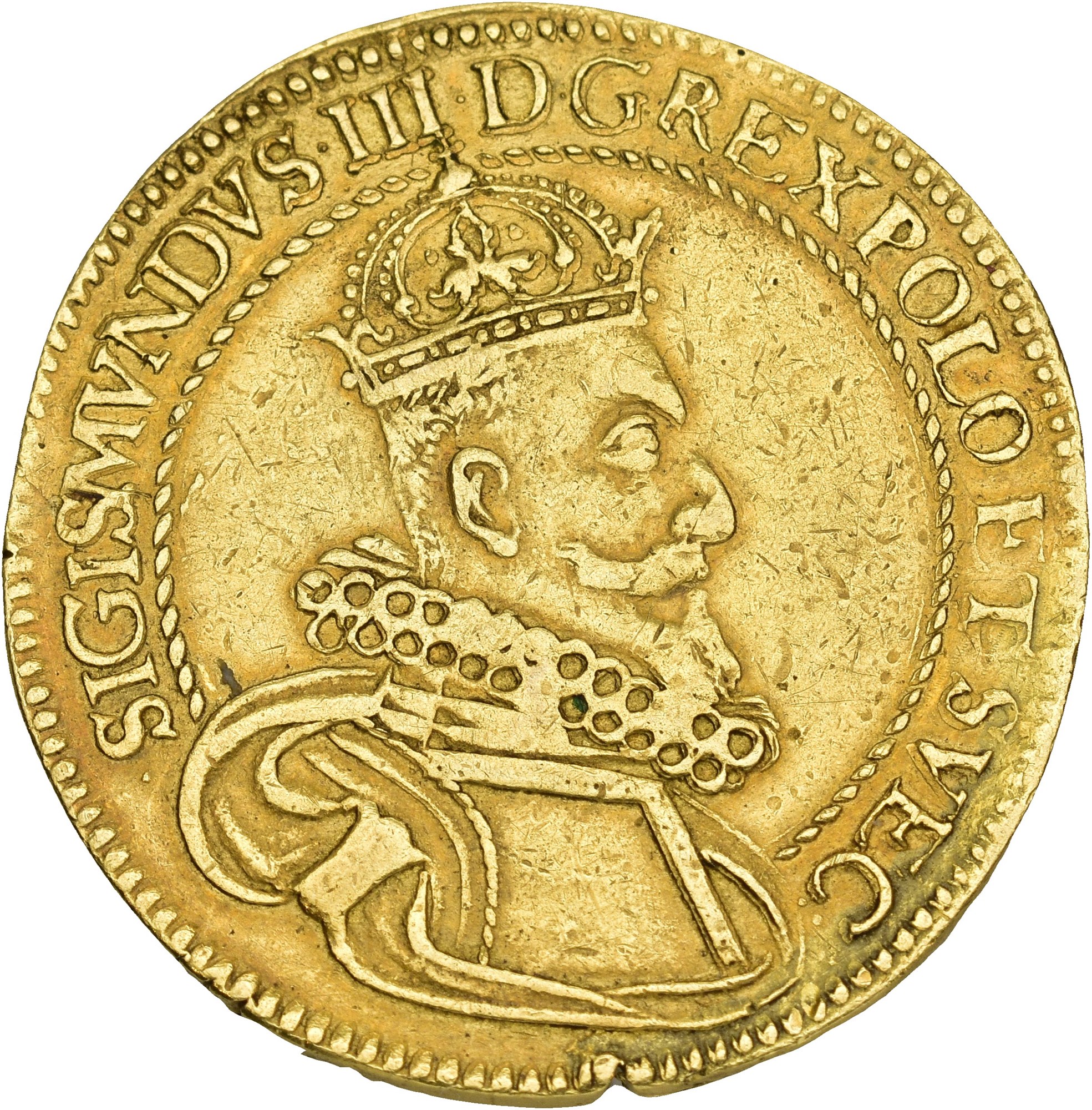 10 Ducats 1612, Kraków. 34.70 g. Metal test cut and pinhole on the rim.