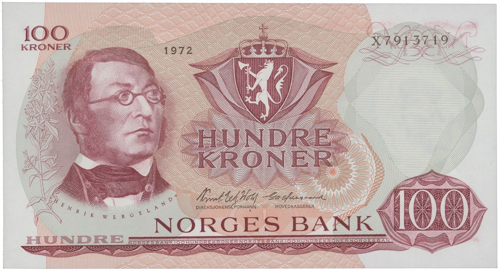 100 kroner 1972. X7913719. Erstatningsseddel/replacement note.