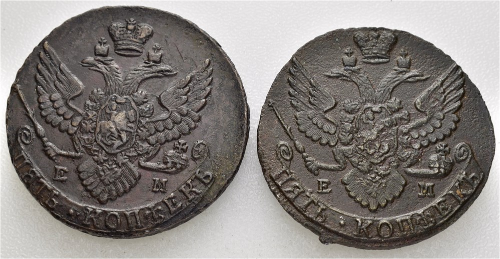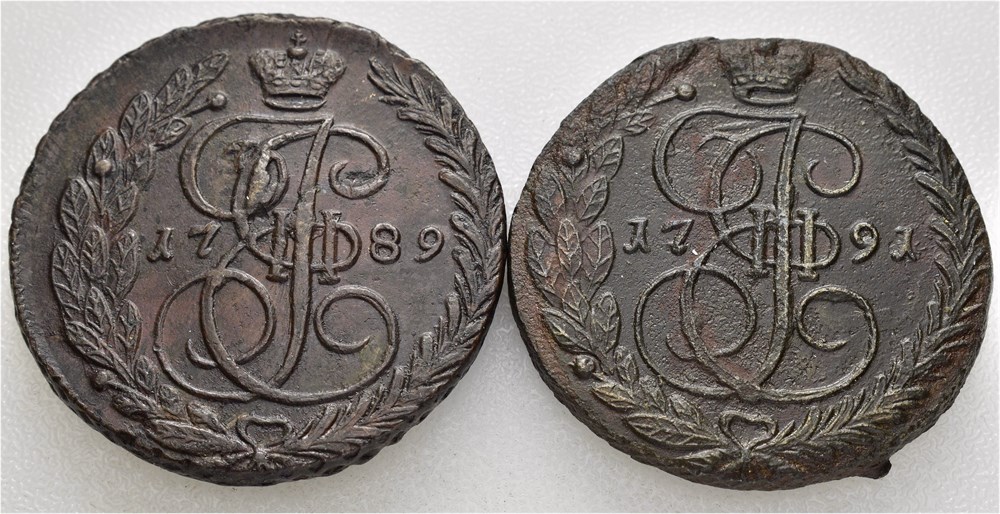 5 kopek 1789 (54,06 g) & 1791 (50,52 g) EM