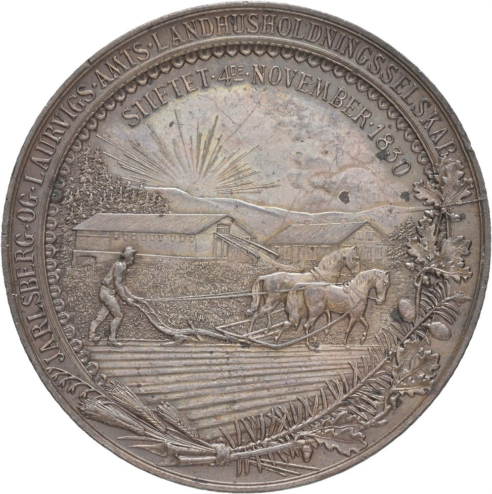 Jarlsberg og Laurvigs Amts Landhusholdningsselskab 1896. Bronse. 43 mm. Flekker/spots