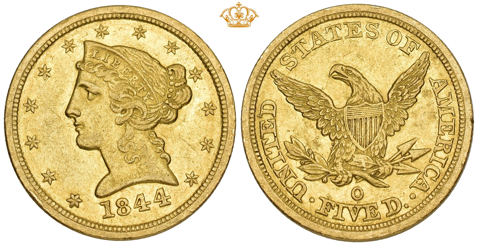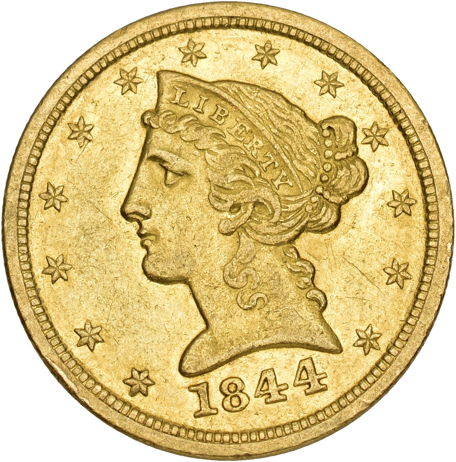 5 Dollars 1844, Philadelphia. 7.52 g.