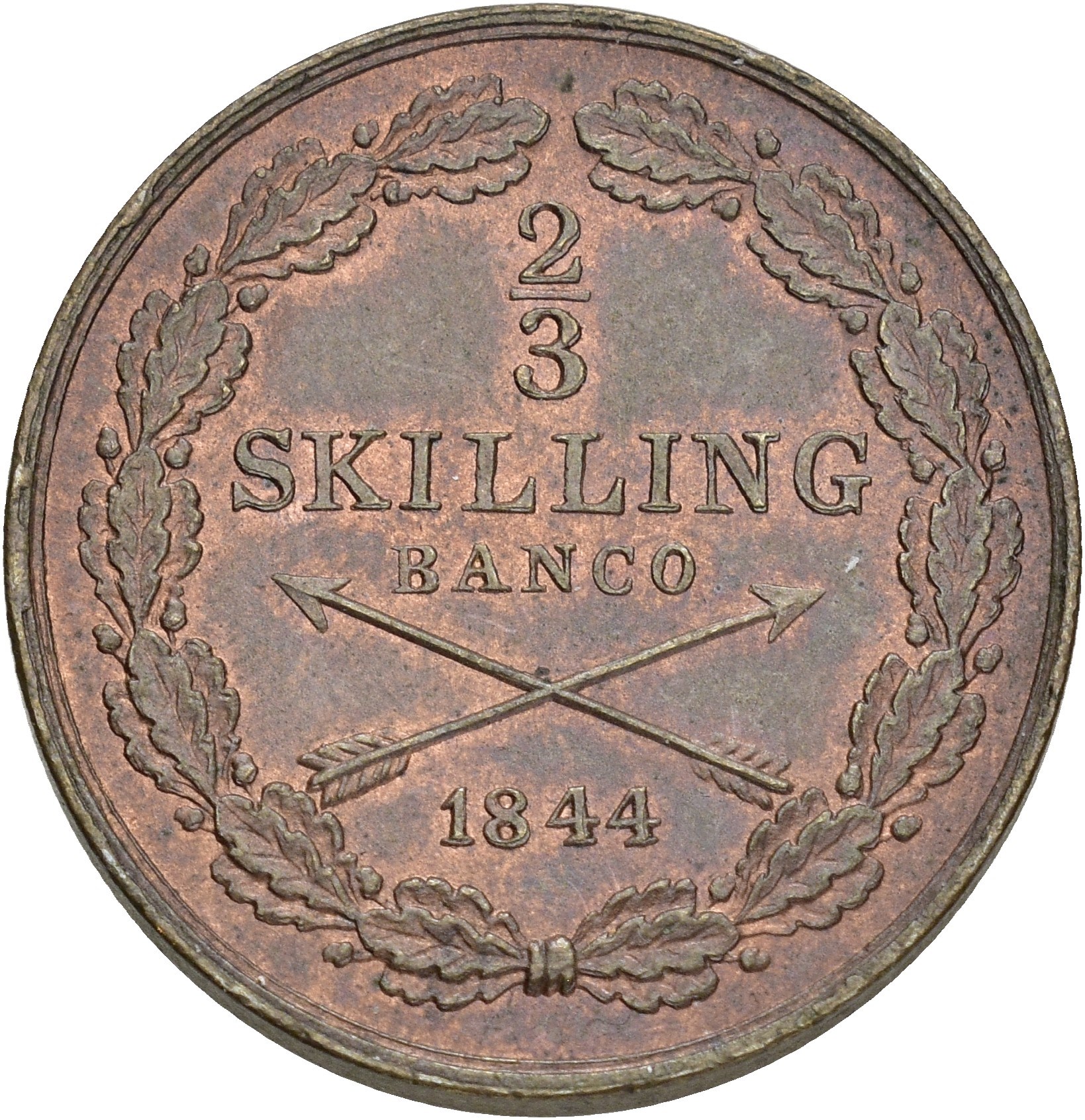 2/3 skilling banco 1844, Stockholm. 9,42 g.