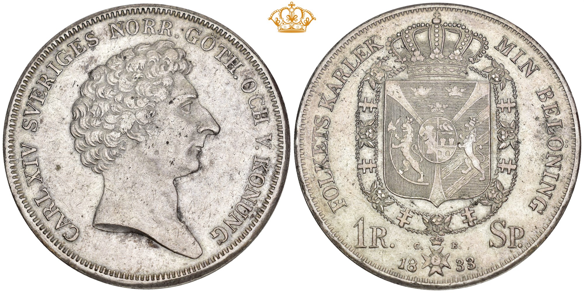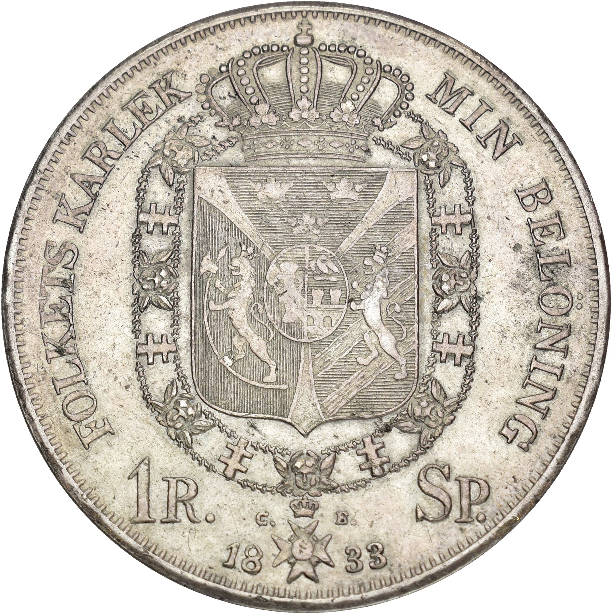 Riksdaler 1833/1, Stockholm. 34,03 g. Renset/cleaned