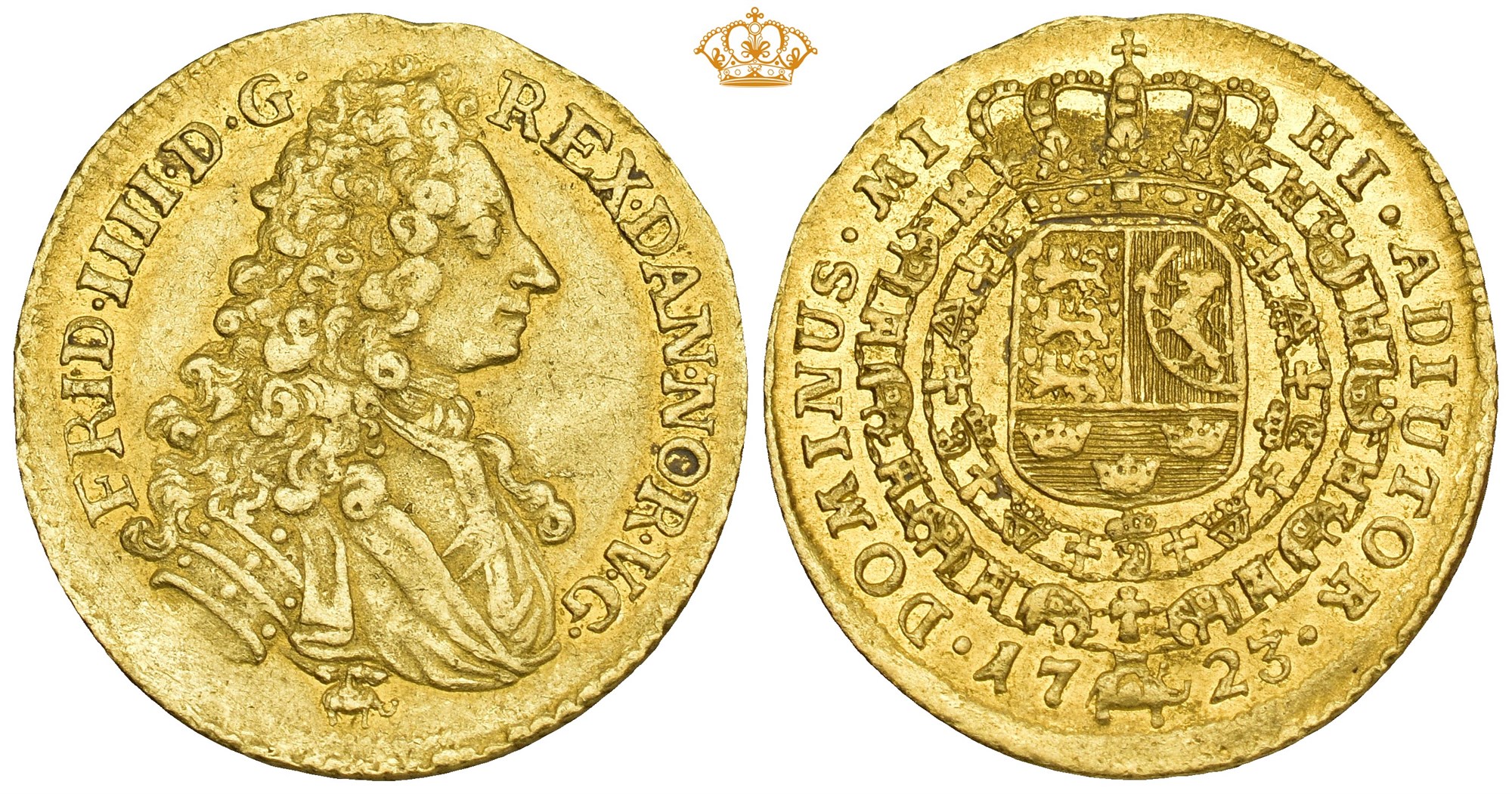 Dukat 1723, København. 3.45 g. Spor etter eventuell montering / possible trace of mounting. Sjelden
