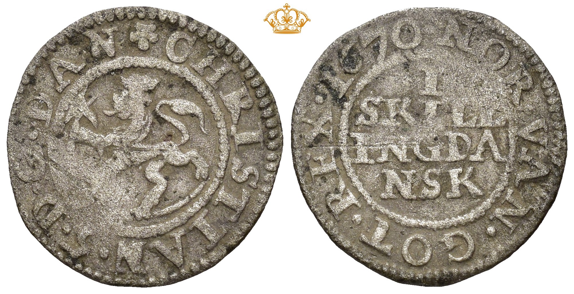 Skilling 1670. S.34. 0,83 g.