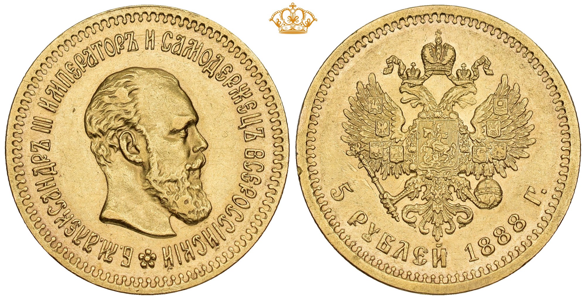 5 Roubles 1888, St. Petersburg. 6.45 g. w/o AF