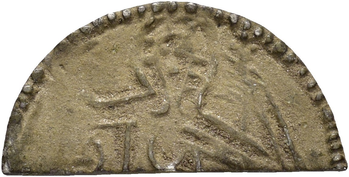 Penning (0,38 g). Klippet (halv mynt) / cut penny.