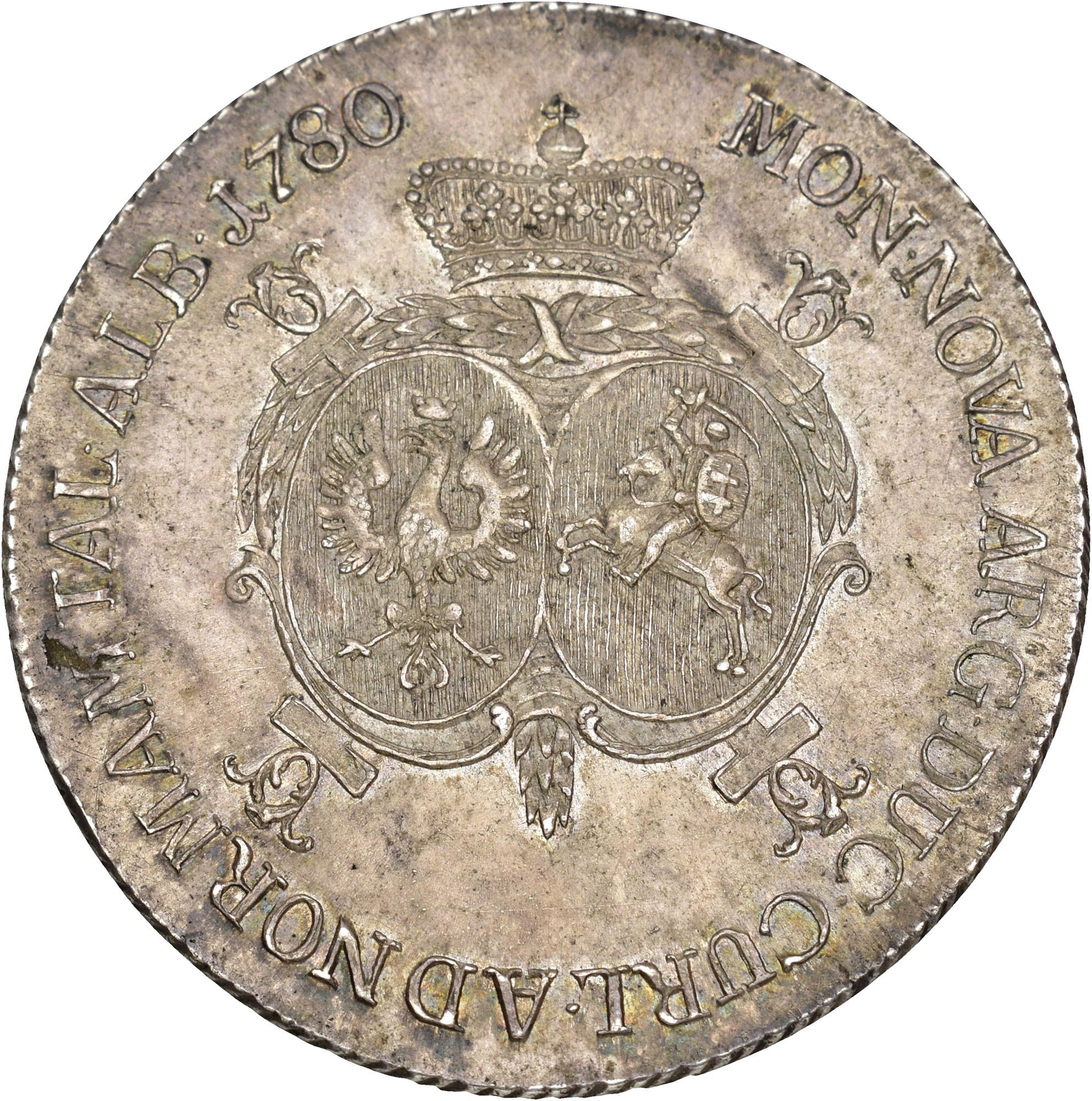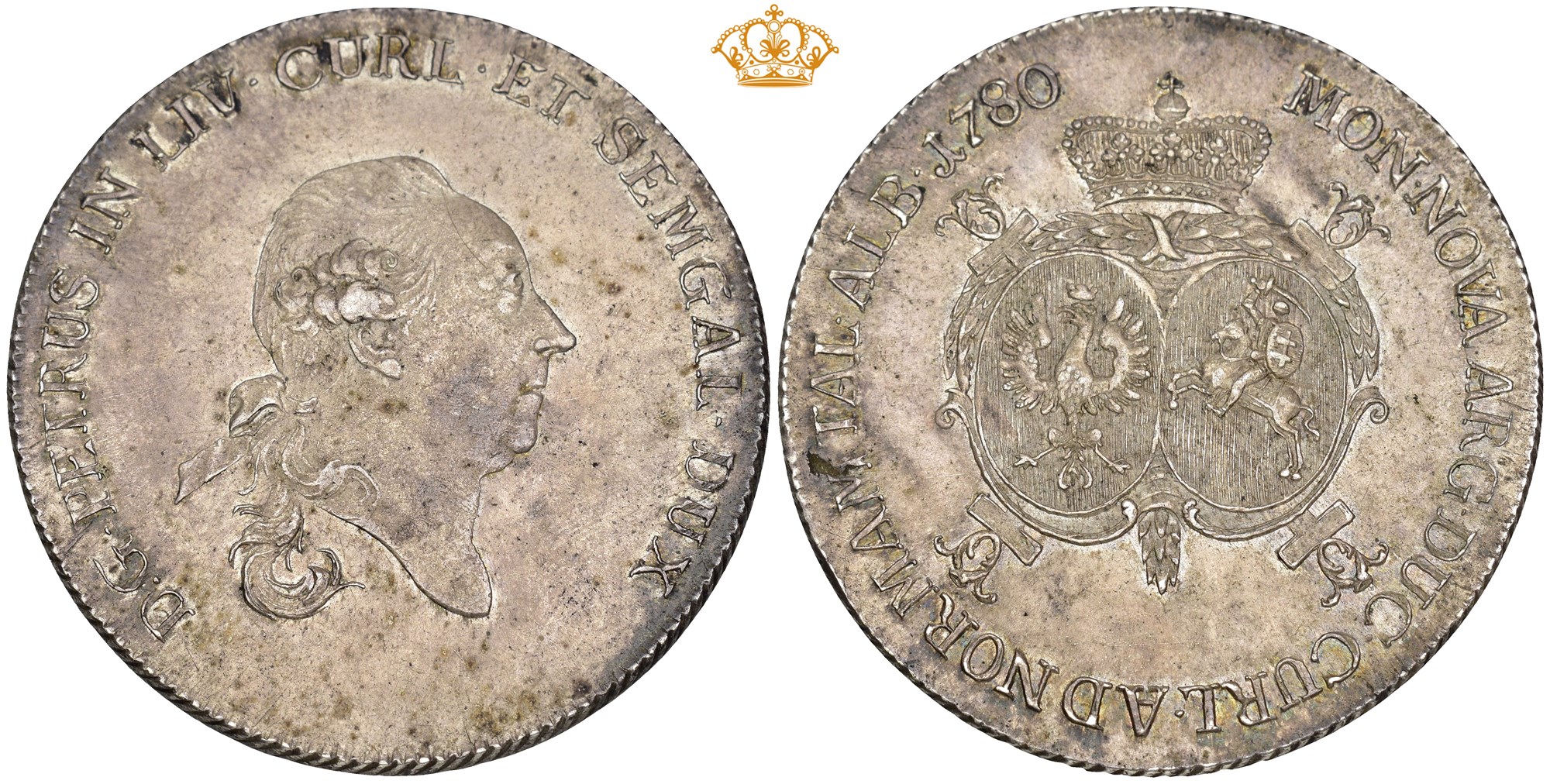 Taler 1780, Mitau. 28.36 g. Lovely toned.