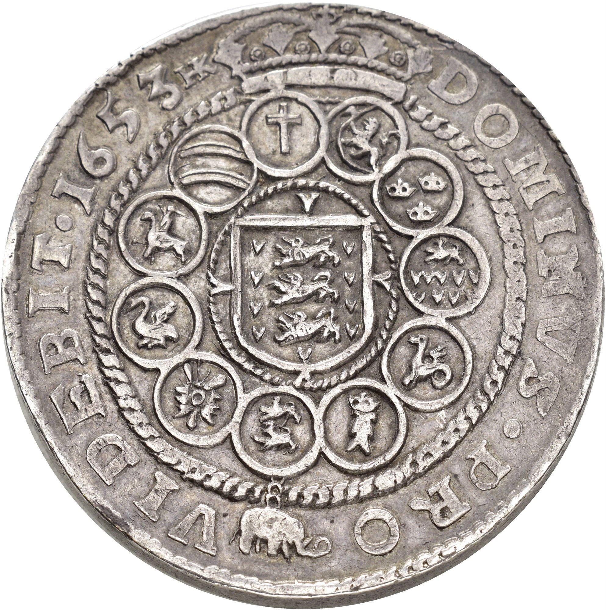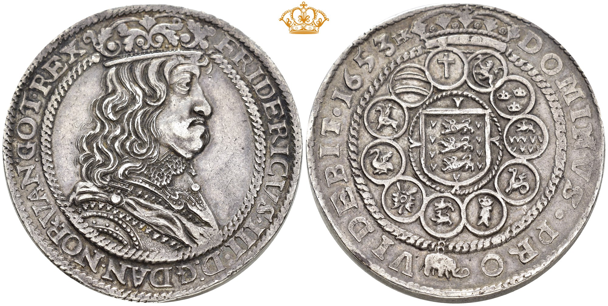 2 speciedaler 1653, København. 58.44 g. Sjelden. Fint eksemplar med imponerende proveniens.