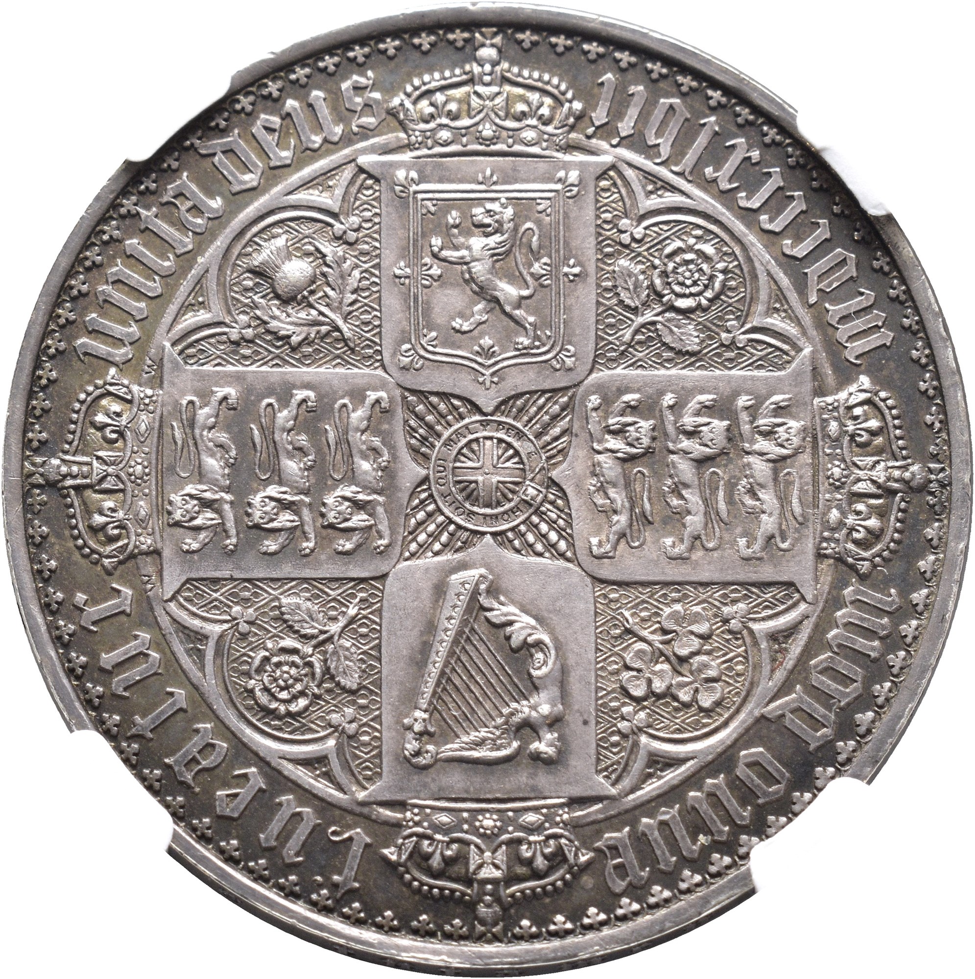 Gothic Crown 1847, London Mint. 28,3 g. Edge inscription UN DECIMO. Graded as PF61 by NGC