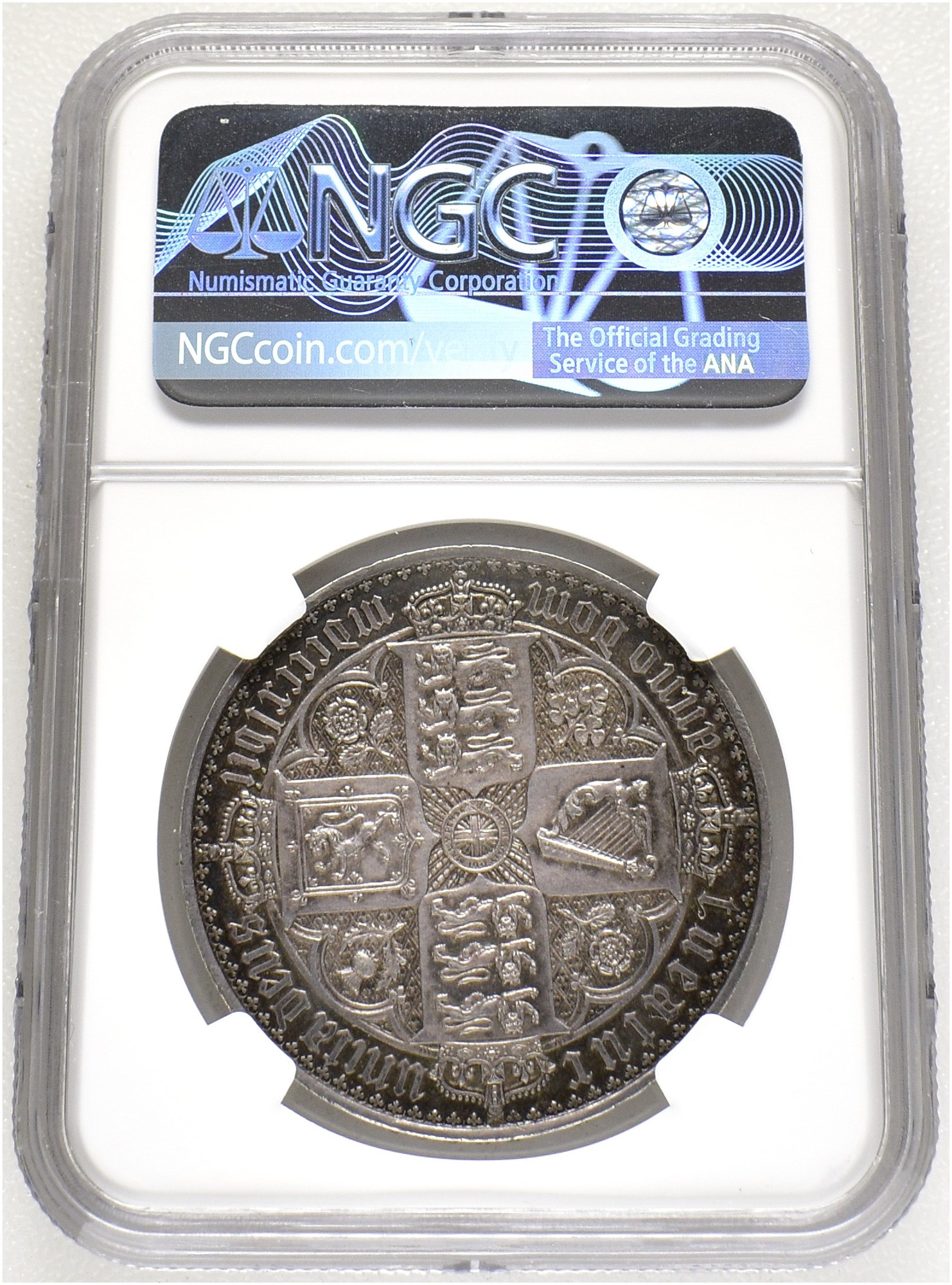 Gothic Crown 1847, London Mint. 28,3 g. Edge inscription UN DECIMO. Graded as PF61 by NGC