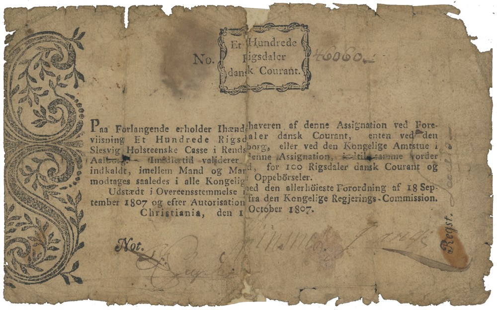 100 rigsdaler courant 1807. No. 46060.
