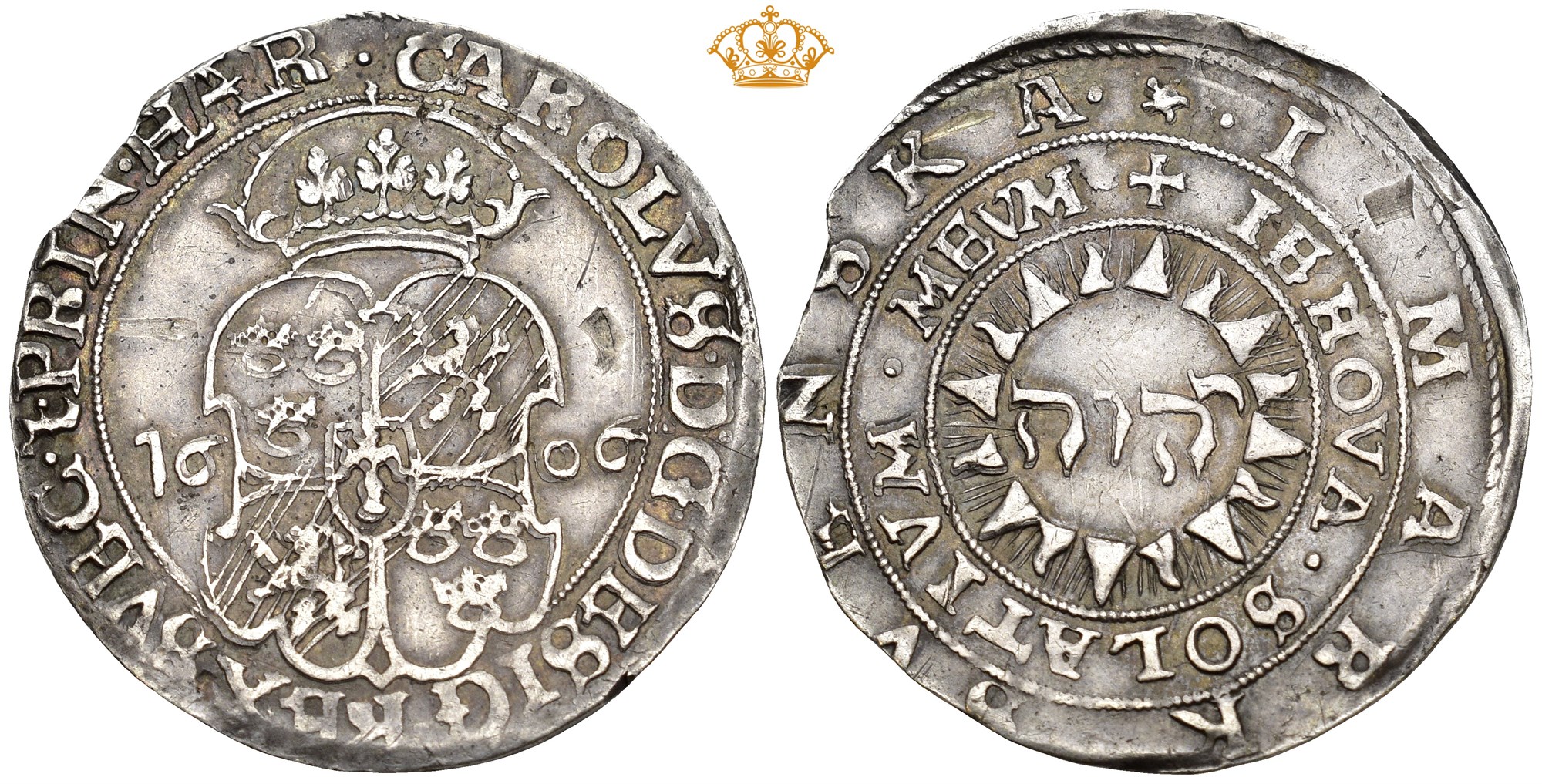 Mark 1606, Stockholm. 4,67 g. Liten kantskade, hakk og minimale riper / small edge damage, nicks, and minor scratches.