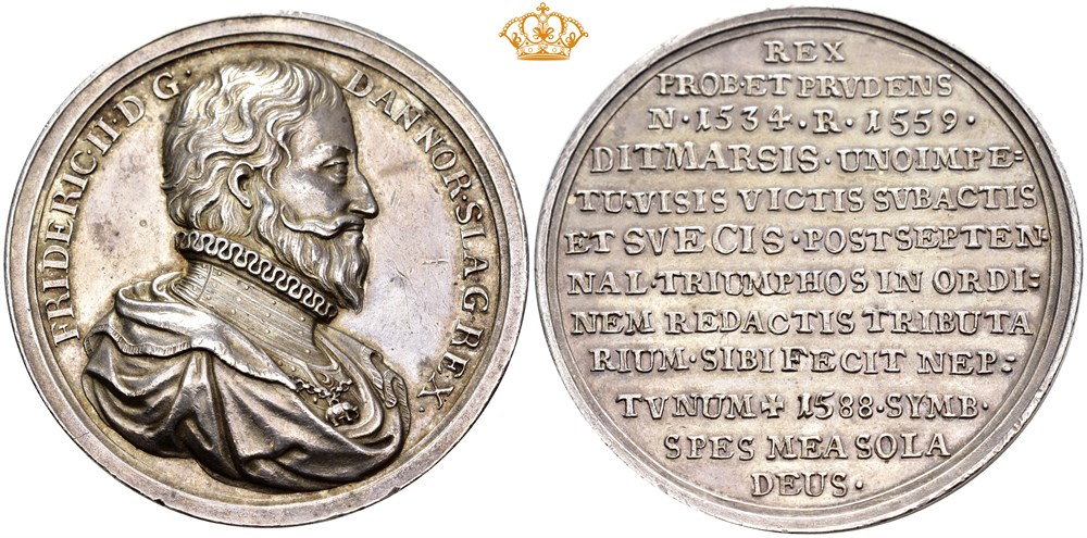 Winekes Kongerekke. Frederik II., u. år (1729), Wineke. Sølv 52,8 mm, 83,74 g.