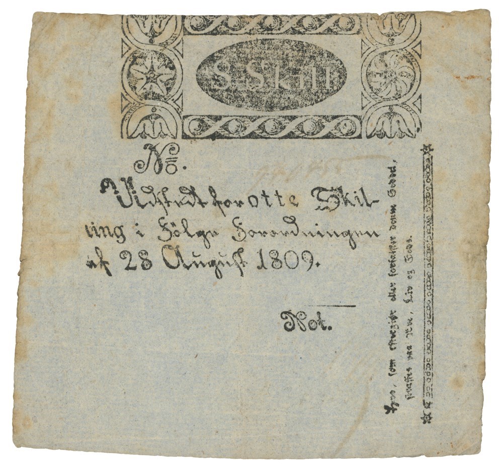 - 8 skilling 1809. No. ?. Litt falmet og flekker/some fading and stains. (15780042)