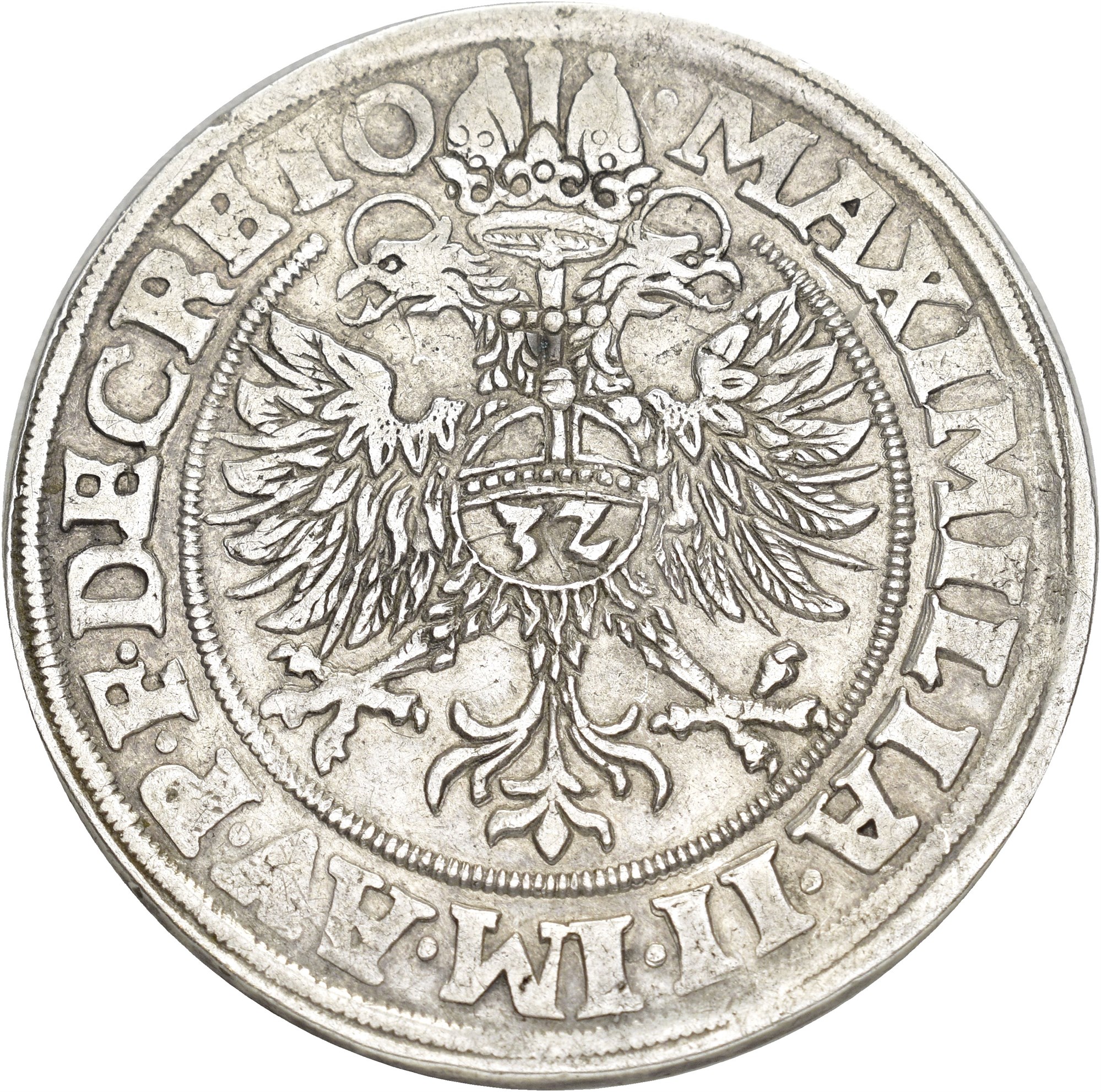 Taler 1574, Lüneburg. 28.74 g. MONETA NOVA CIVI LVNEBVRG 74, on reverse the title of Maximillian II: MAXIMILIA II AVP F DECRETO. Only two specimens known, the other one is in Schweizerisches Nationalmuseum, Zürich.