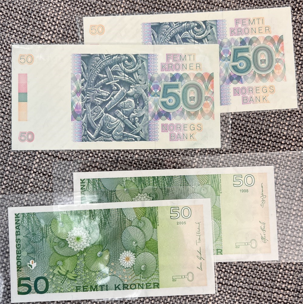 - Lott 4 stk. 50 kroner 1984, 1985, 1998 og 2005 (15786581)