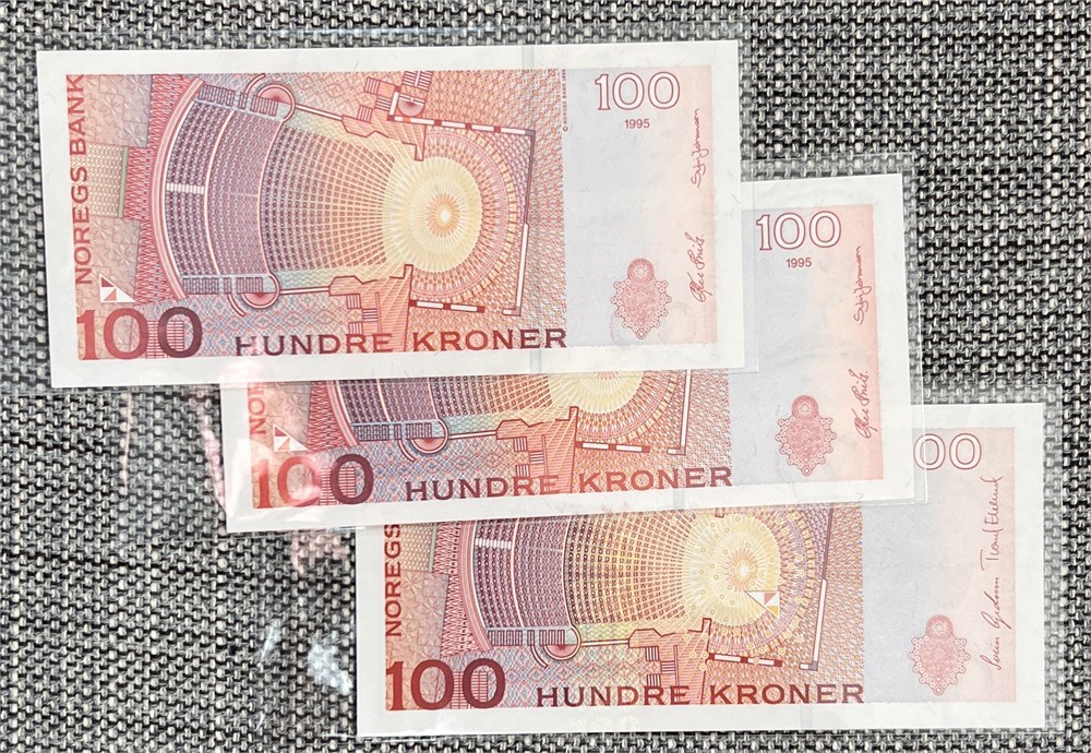- Lott 3 stk. 100 kroner 1995 x2 og 2003 (15786723)