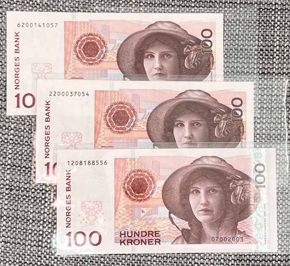 Lott 3 stk. 100 kroner 1995 x2 og 2003