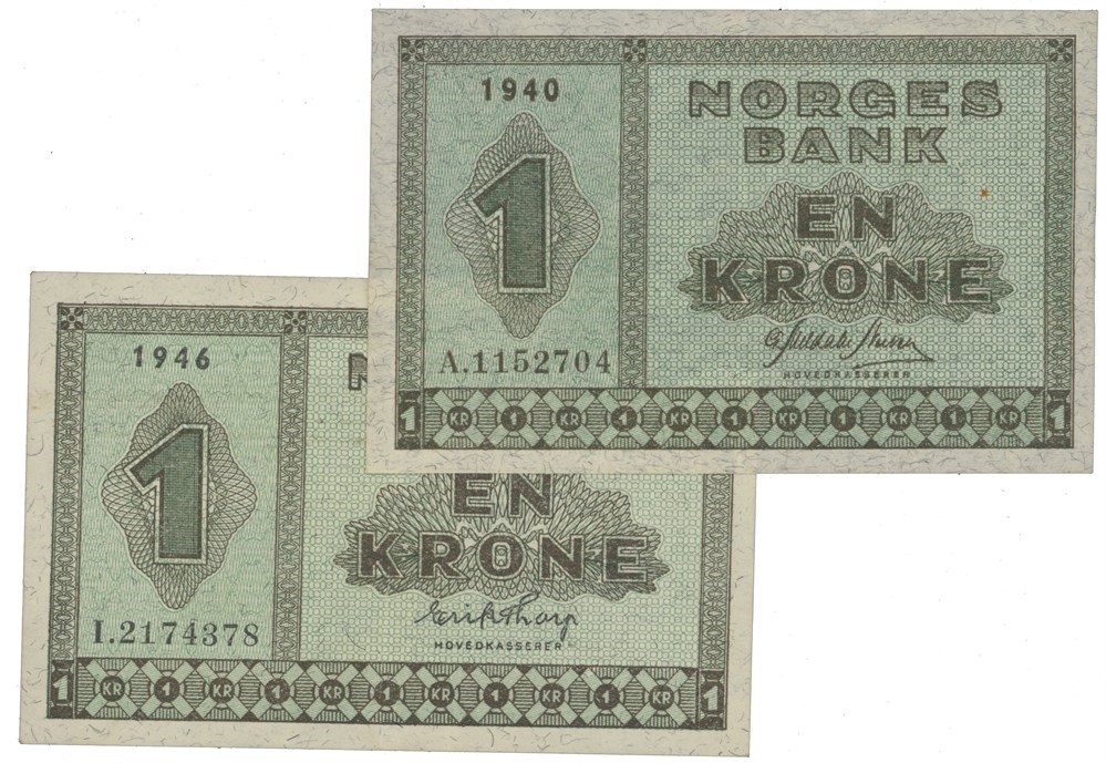 - 2 stk. 1 krone 1940 A og 1946 I (15787859)