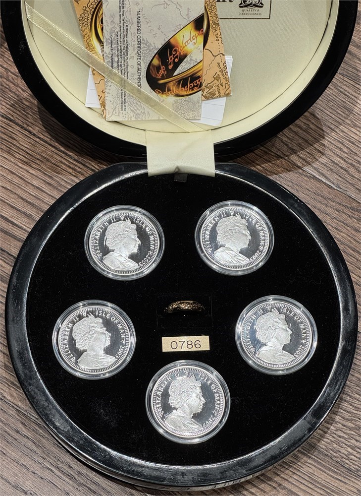 Isle of Man. Ringenes Herre myntsett med 5 stk. 1 crown 2003 og "The One Ring". Pobjoy Mint. Kommer i originalt etui. Opplag: 5000