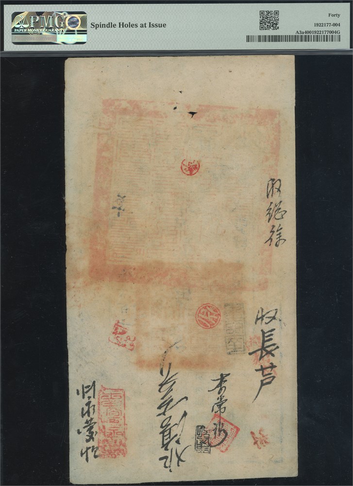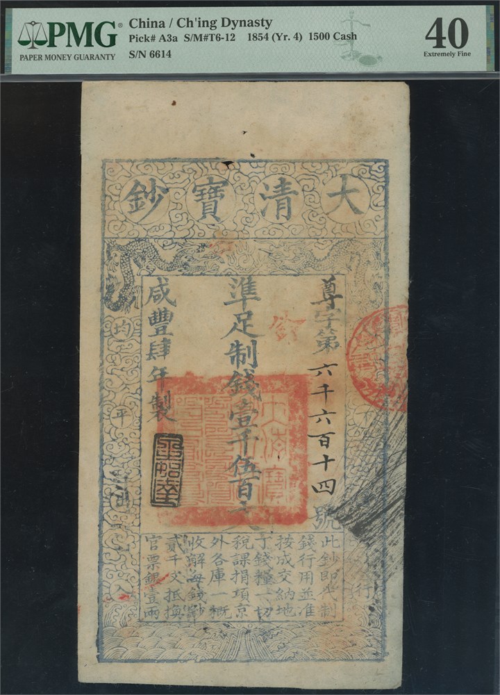 1500 Cash 1854 (Yr. 4) S/N 6614. PMG comment: "Spindle holes at issue". A popular type and a one year only denomination.