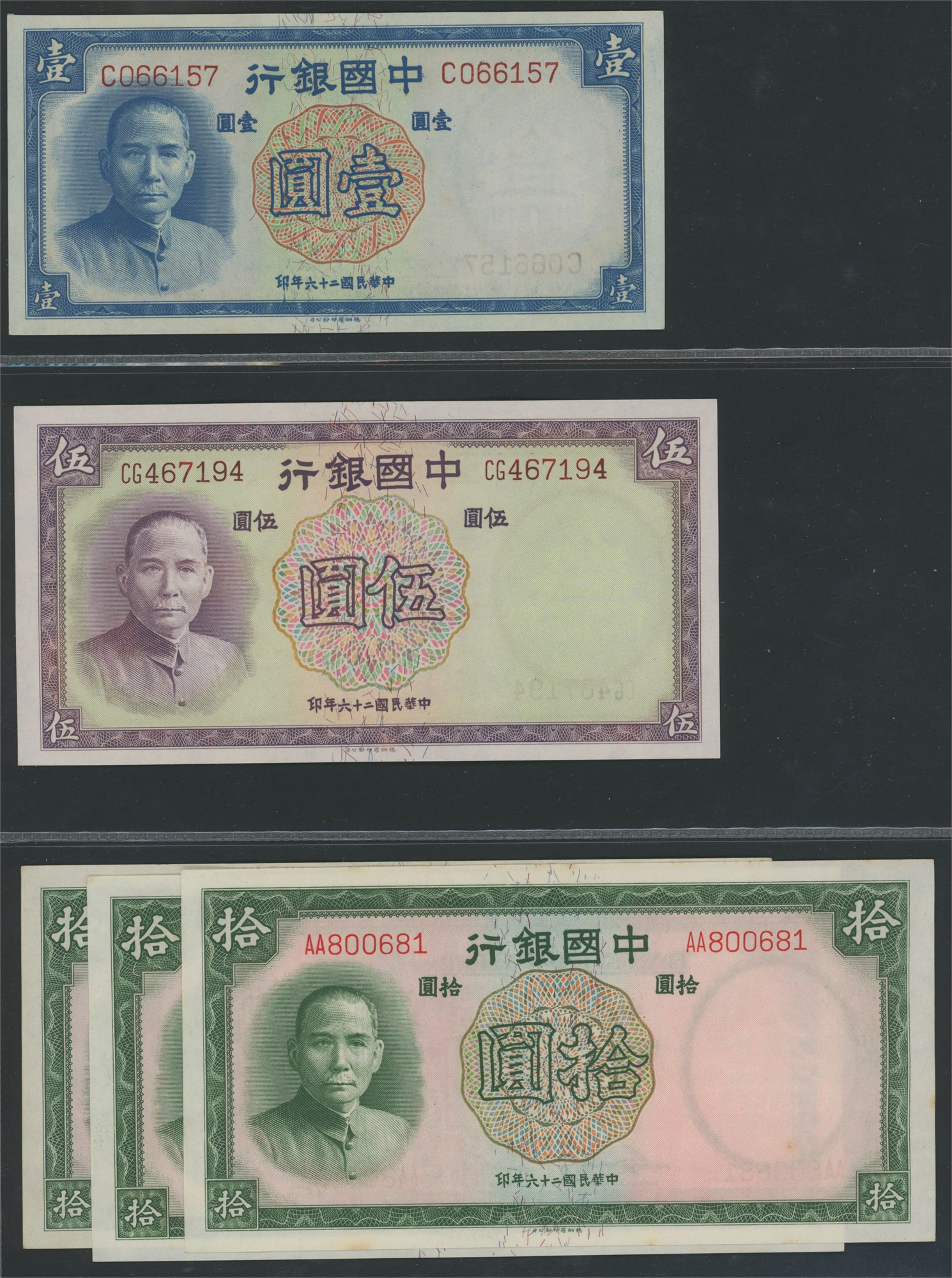 Lot 15 pcs. from 1931/1940, including P.71, P.77a and P.88b, and also 3 pcs. of P.81. Mostly UNC.