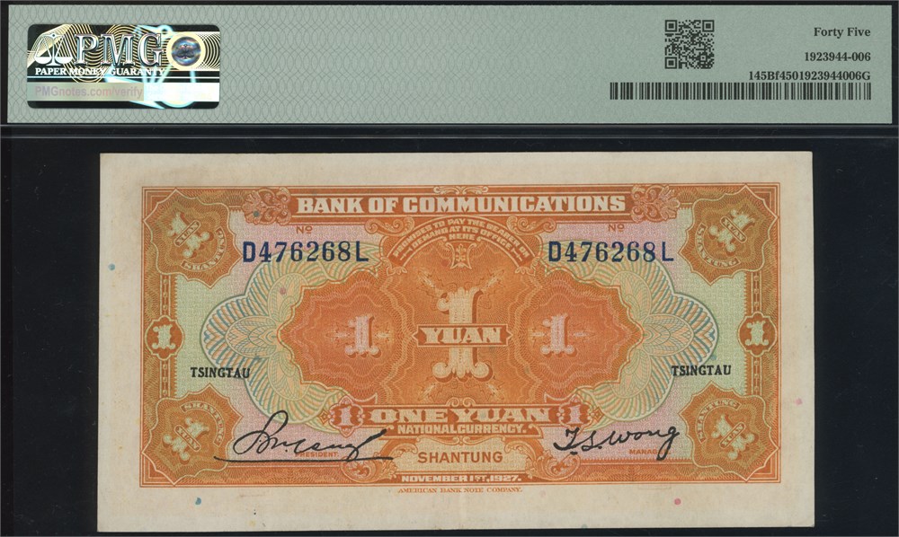 1 Yuan 1927 S/N D476268L, Tsingtau / Shantung.
