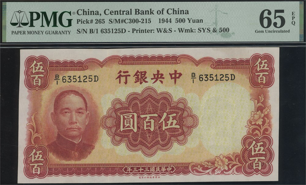 Lot 2 pcs. 500 Yuan 1944 S/N A/O 434322 and B/1 635125D