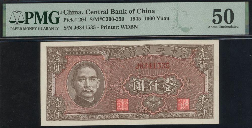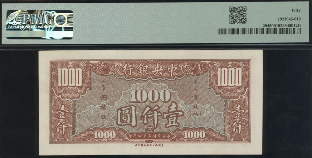 1000 Yuan 1945 S/N J6341535
