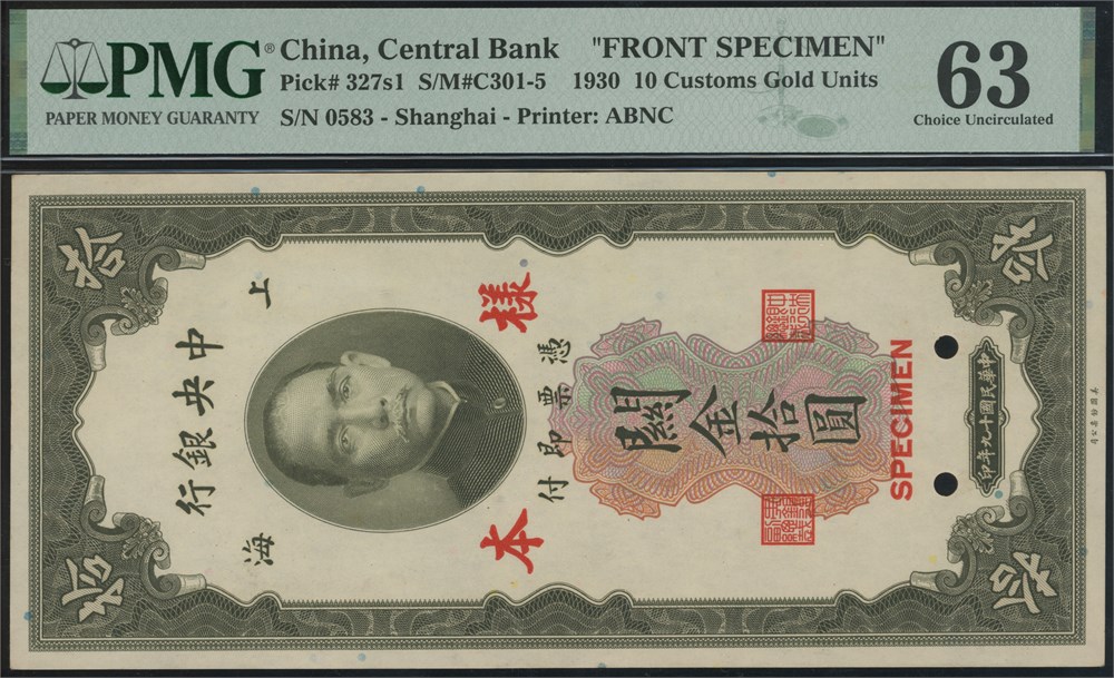 10 Customs Gold Units 1930 "Front Specimen" S/N 0583