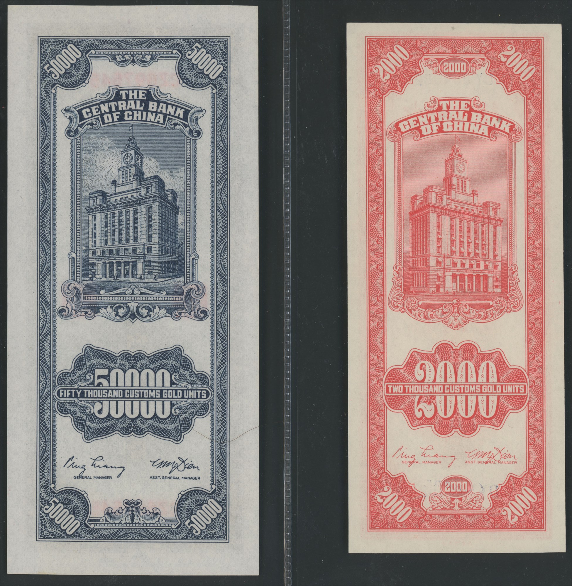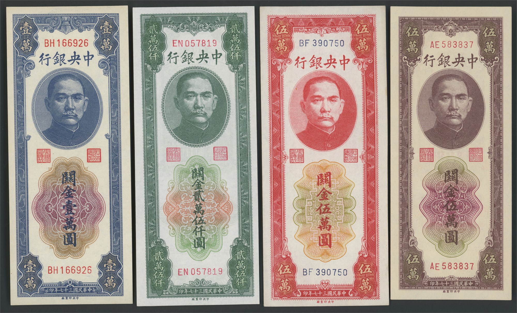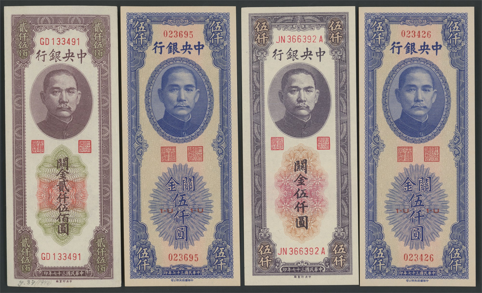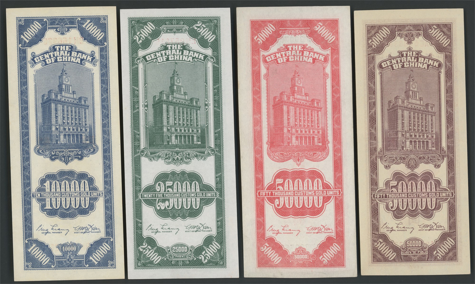 Lot 10 pcs. between P.357 and P.373, all Customs Gold Units from the 1948 issue.