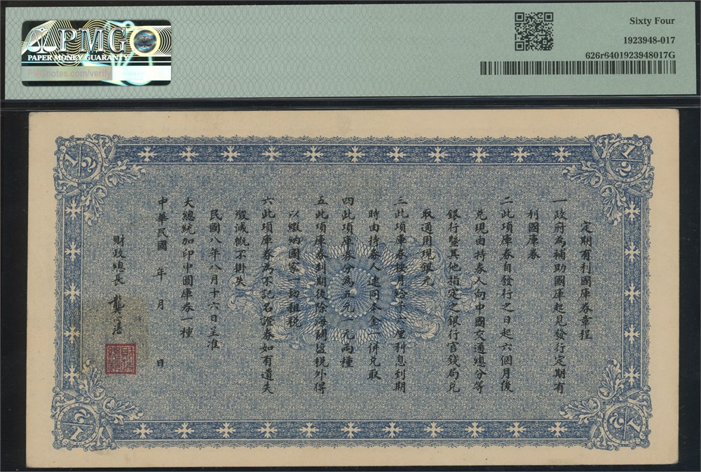 1/2 Yuan ND (1919-20) S/N 1412864, remainder