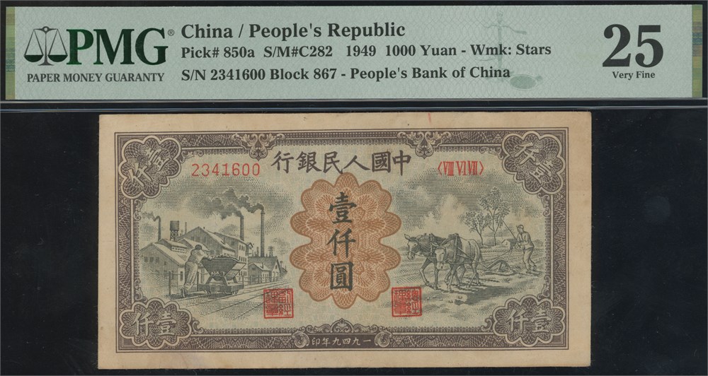 1000 Yuan 1949 S/N 2341600 Block 867.