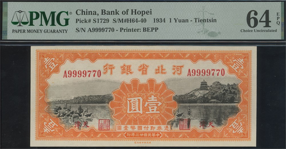 1 Yuan 1934 S/N A9999770