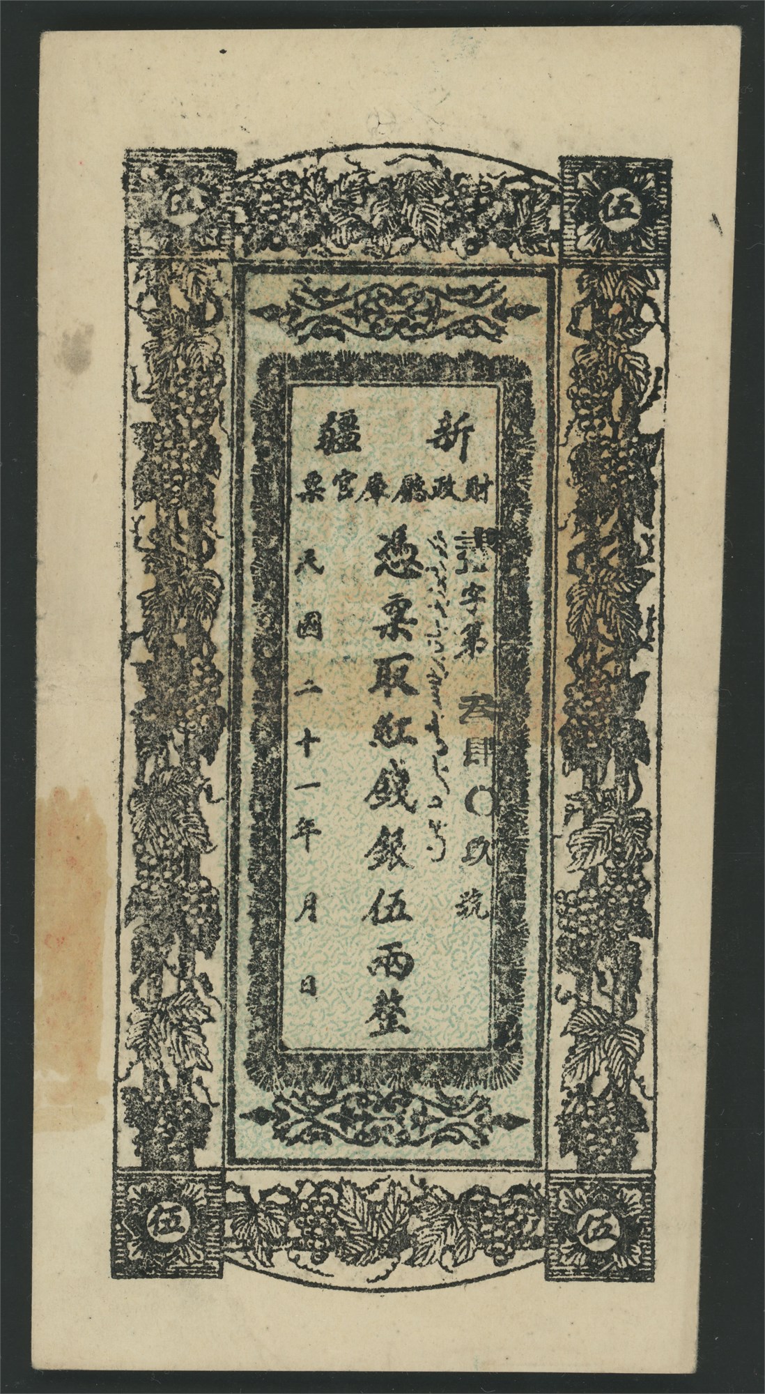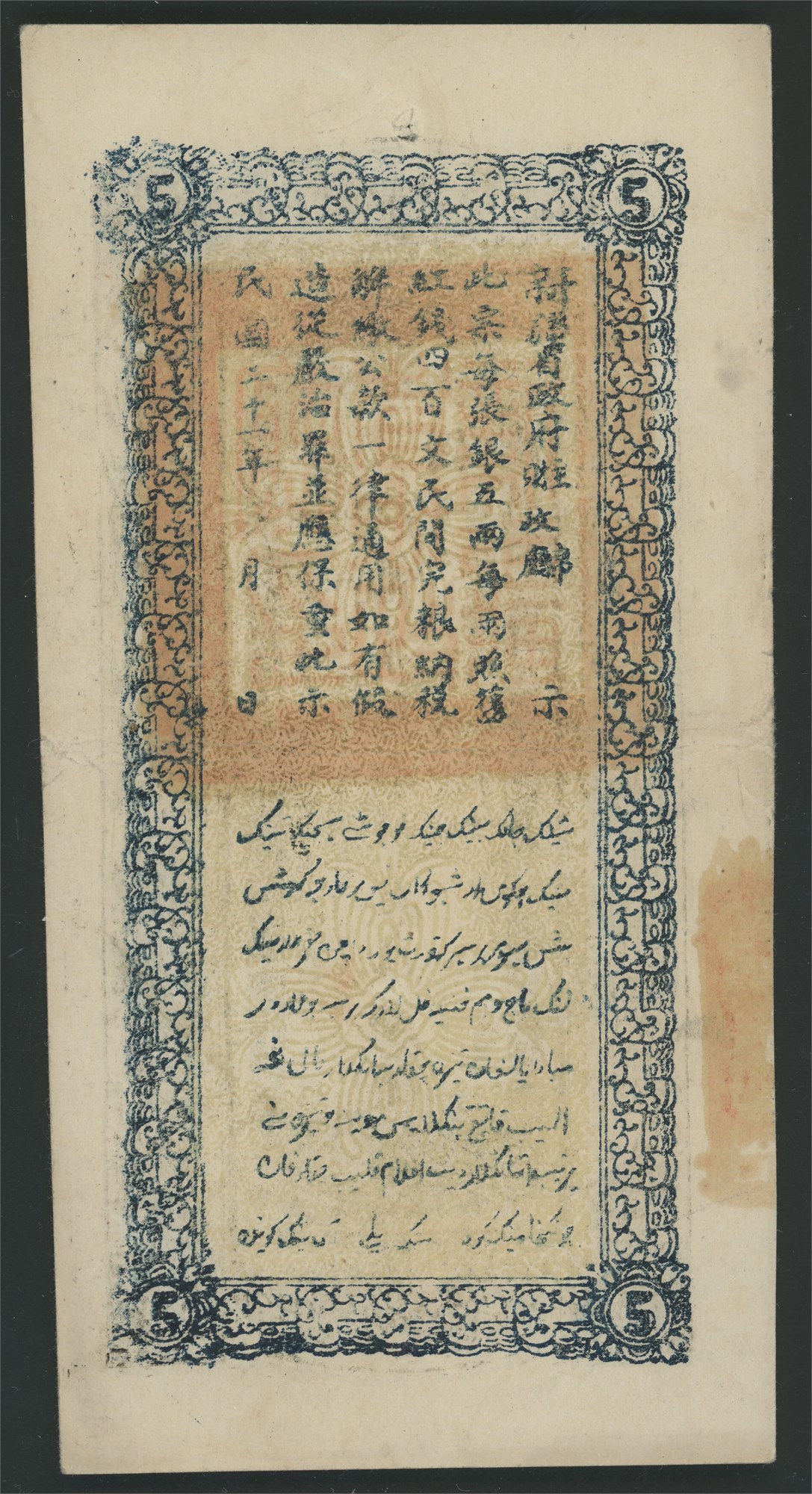Lot 7 pcs. 1921/1932, between P.S1780 and P.S1869. 5 Taels, 100 Cash and 400 Cash.
