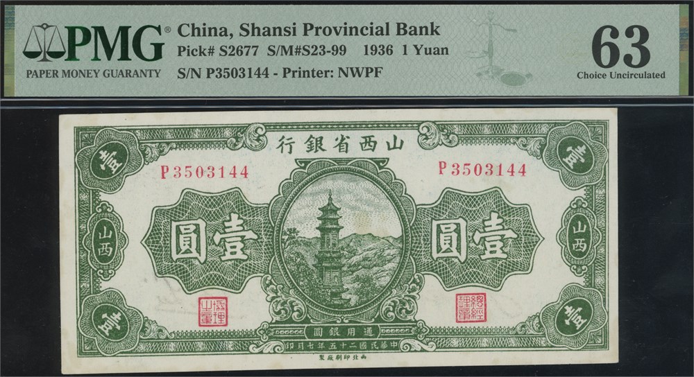 1 Yuan 1936 S/N P3503144.
