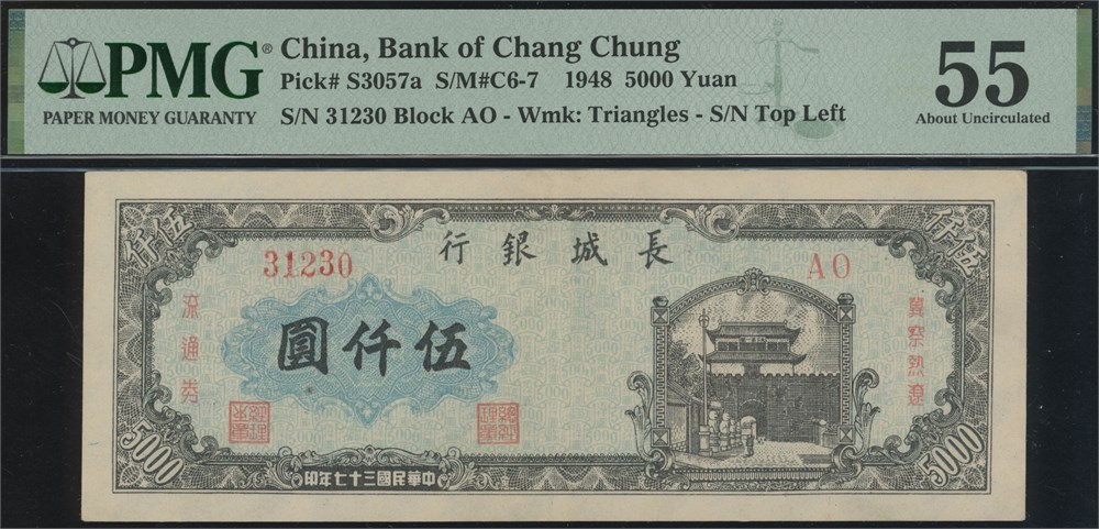 5000 Yuan 1948 S/N 31230 Block AO.