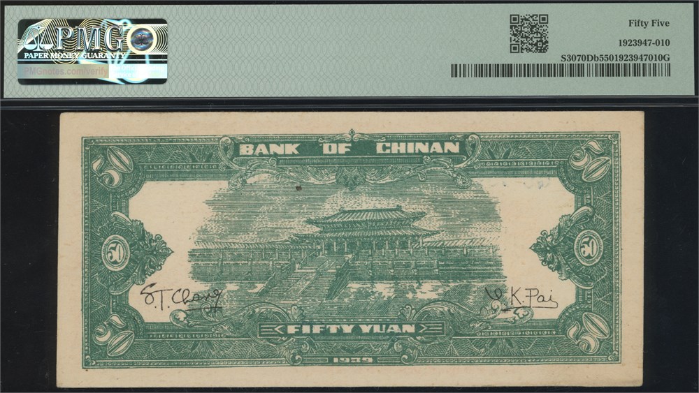 50 Yuan 1939 S/N GC754957. A scarce type in this grade.