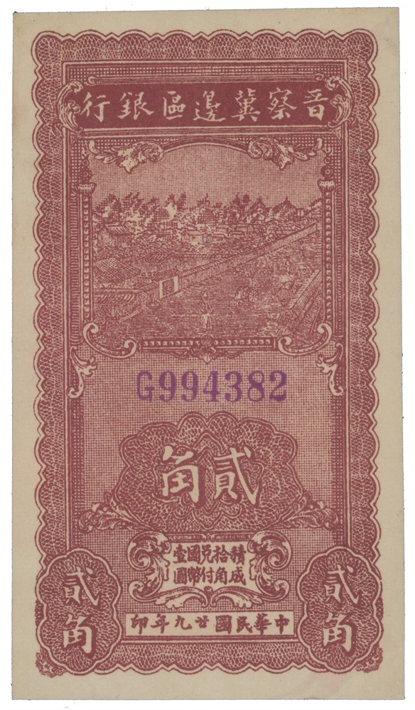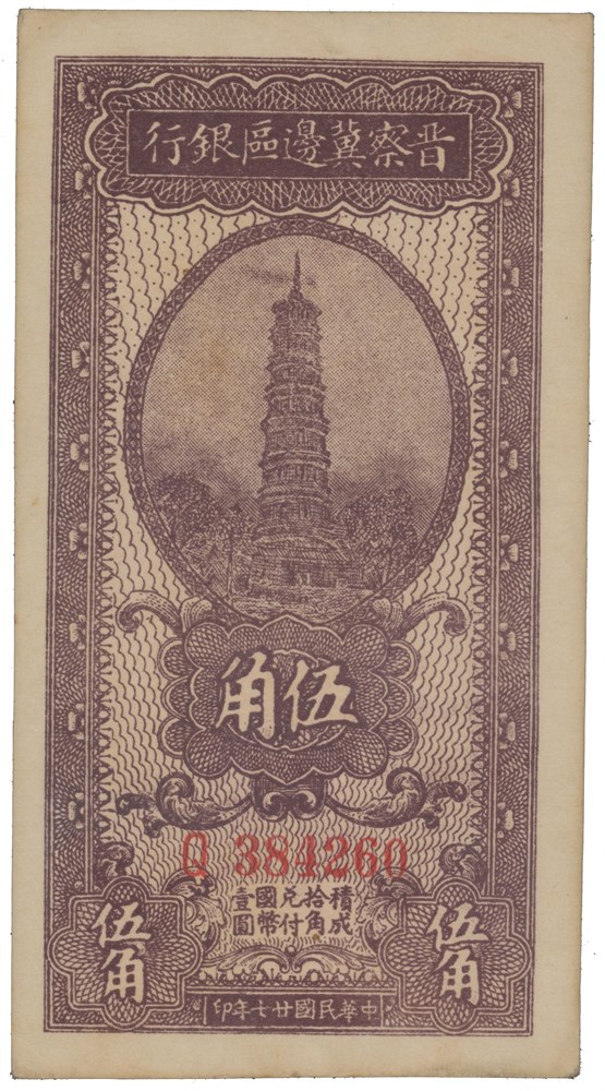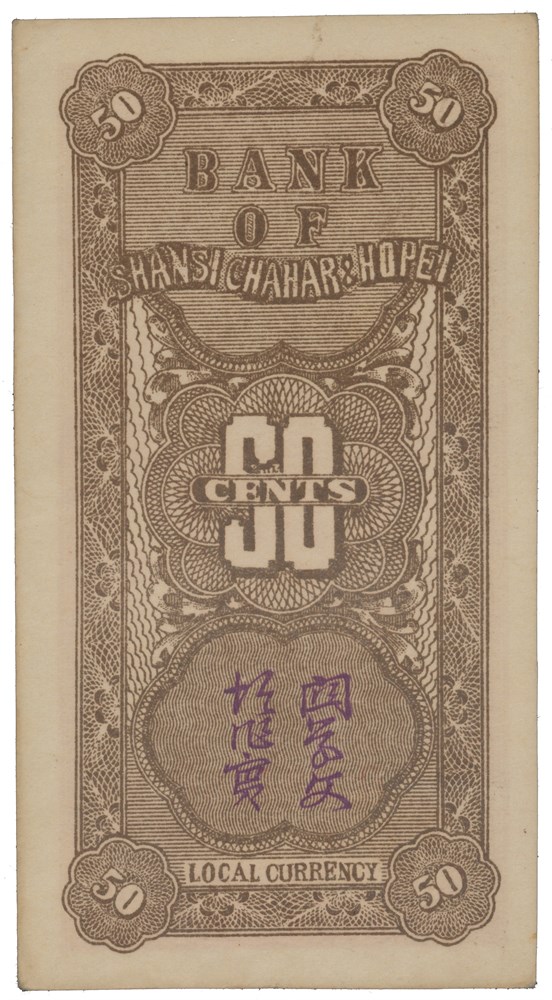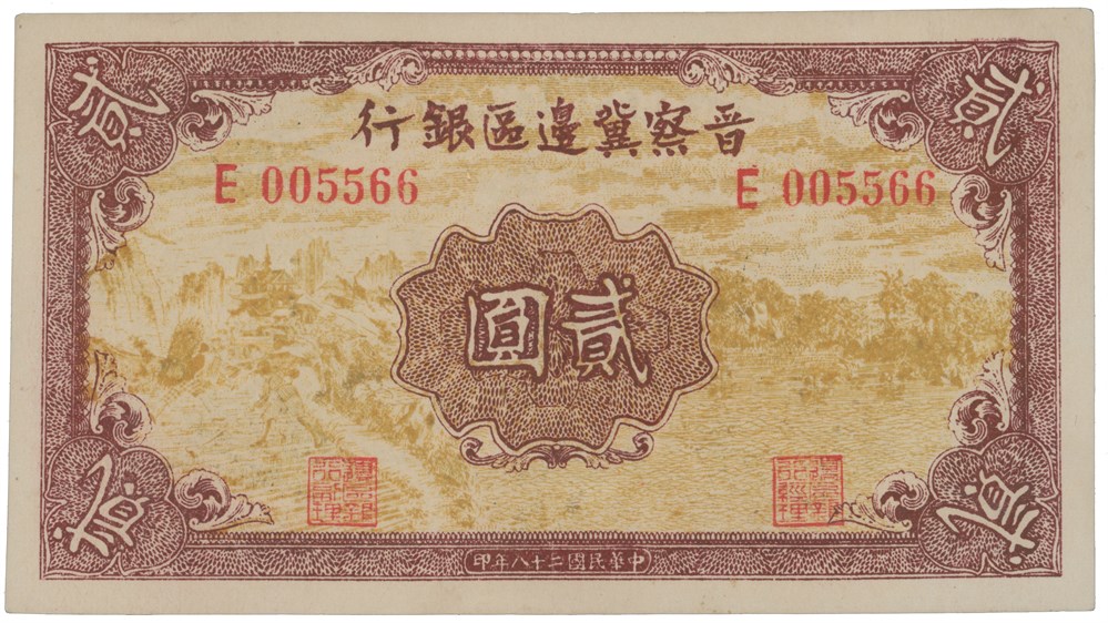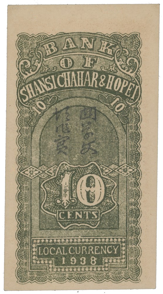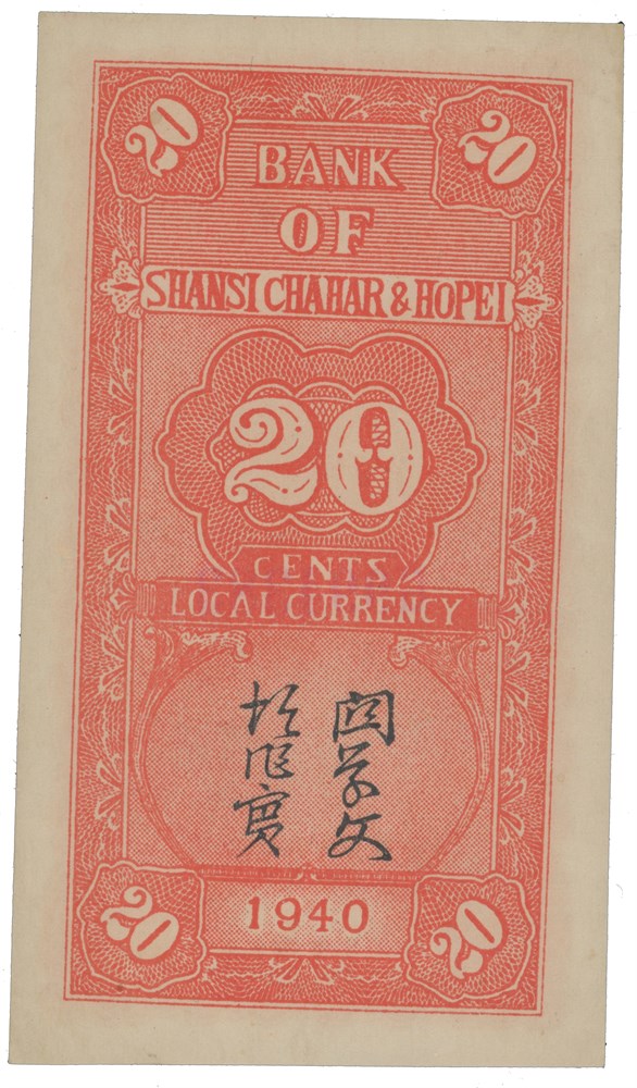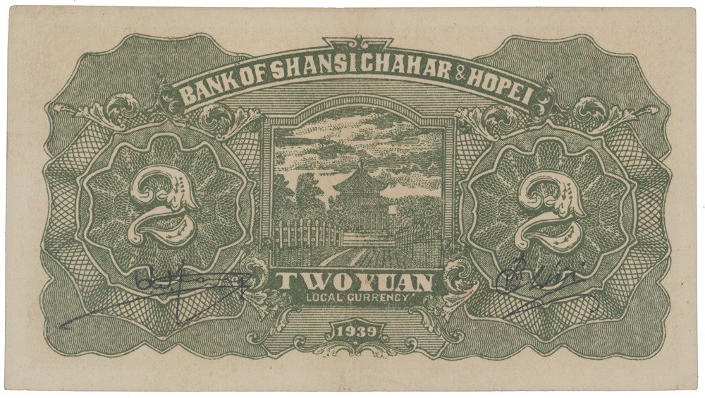 Lot 4 pcs. 1 Chiao = 10 Cents, 2 Chiao = 20 Cents, 5 Chiao = 50 Cents and 2 Yuan 1938-40.