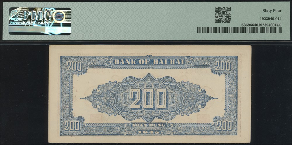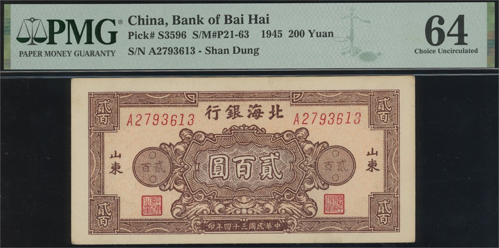 200 Yuan 1945 S/N A2793613, Shan Dung.