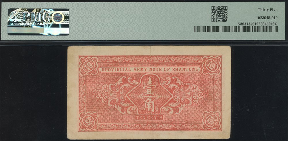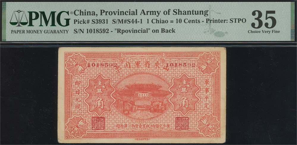 1 Chiao = 10 Cents ND S/N 1018592. "Rpovincial" on back (error).
