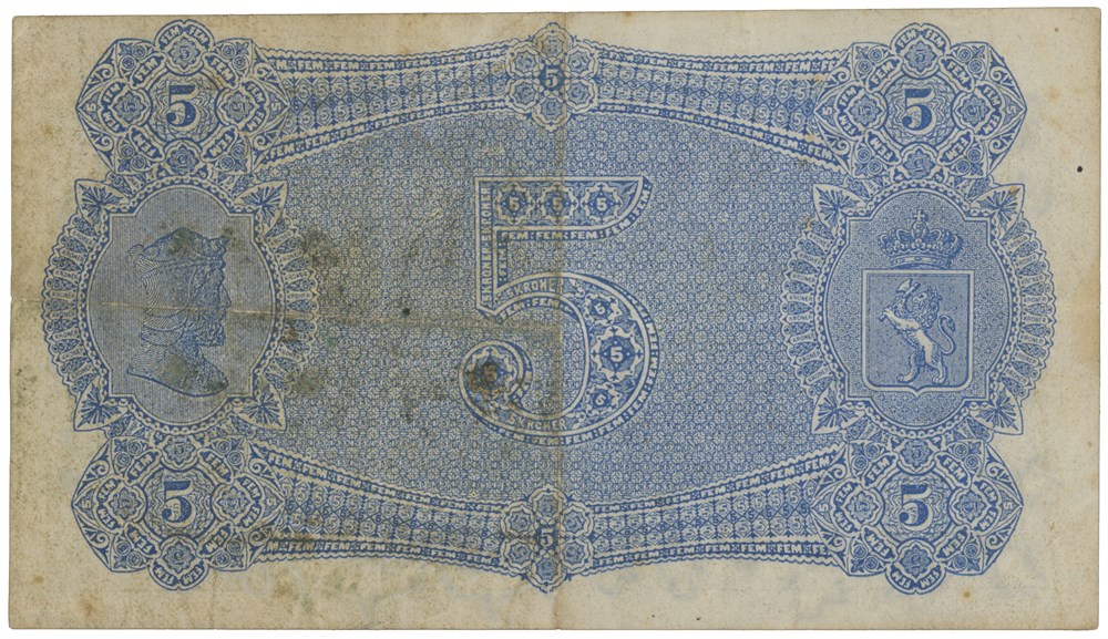 5 kroner 1899. D.5890727. Signert Arnet. Noen mindre flekker på revers/some minor stains on reverse.