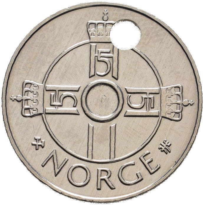 1 krone 1997 skjevt hull