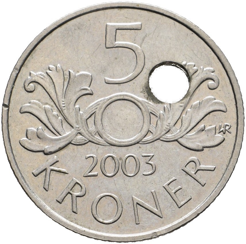 5 krone 2003 skjevt hull