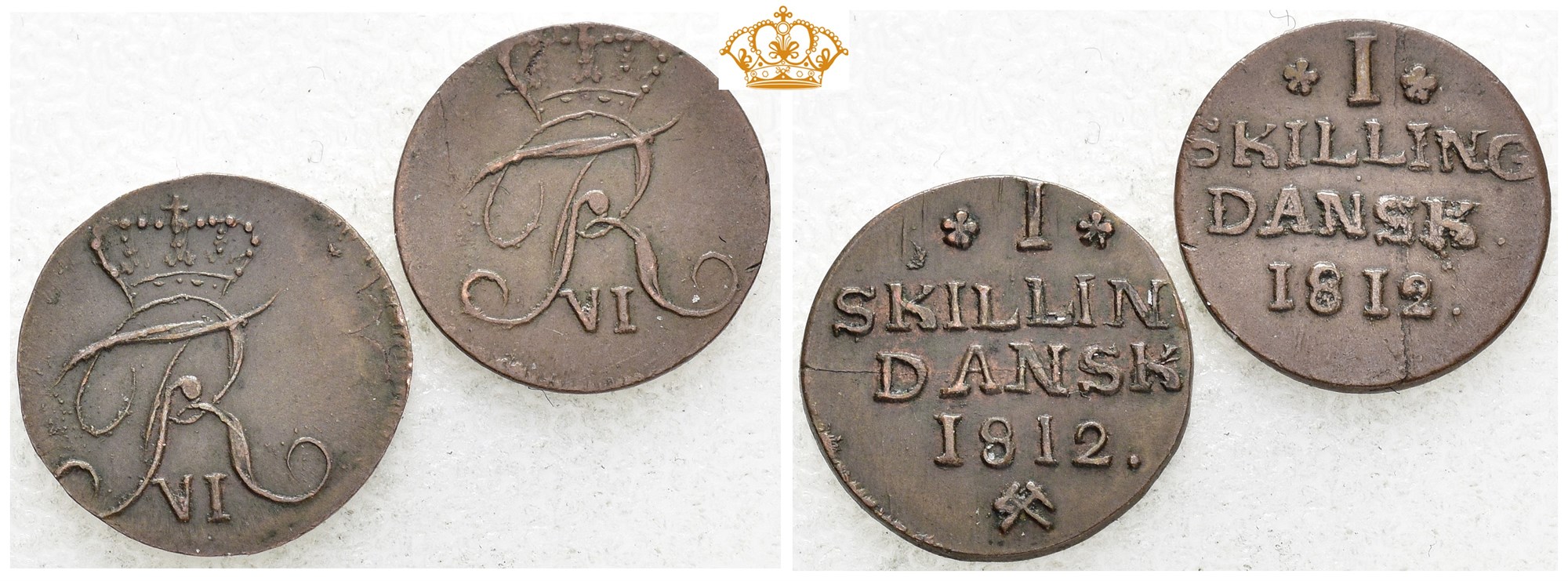 Lott 2 stk. 1 skilling 1812. S.9 og S.8. 0,78 / 0,88 g. Med og uten myntmerke.