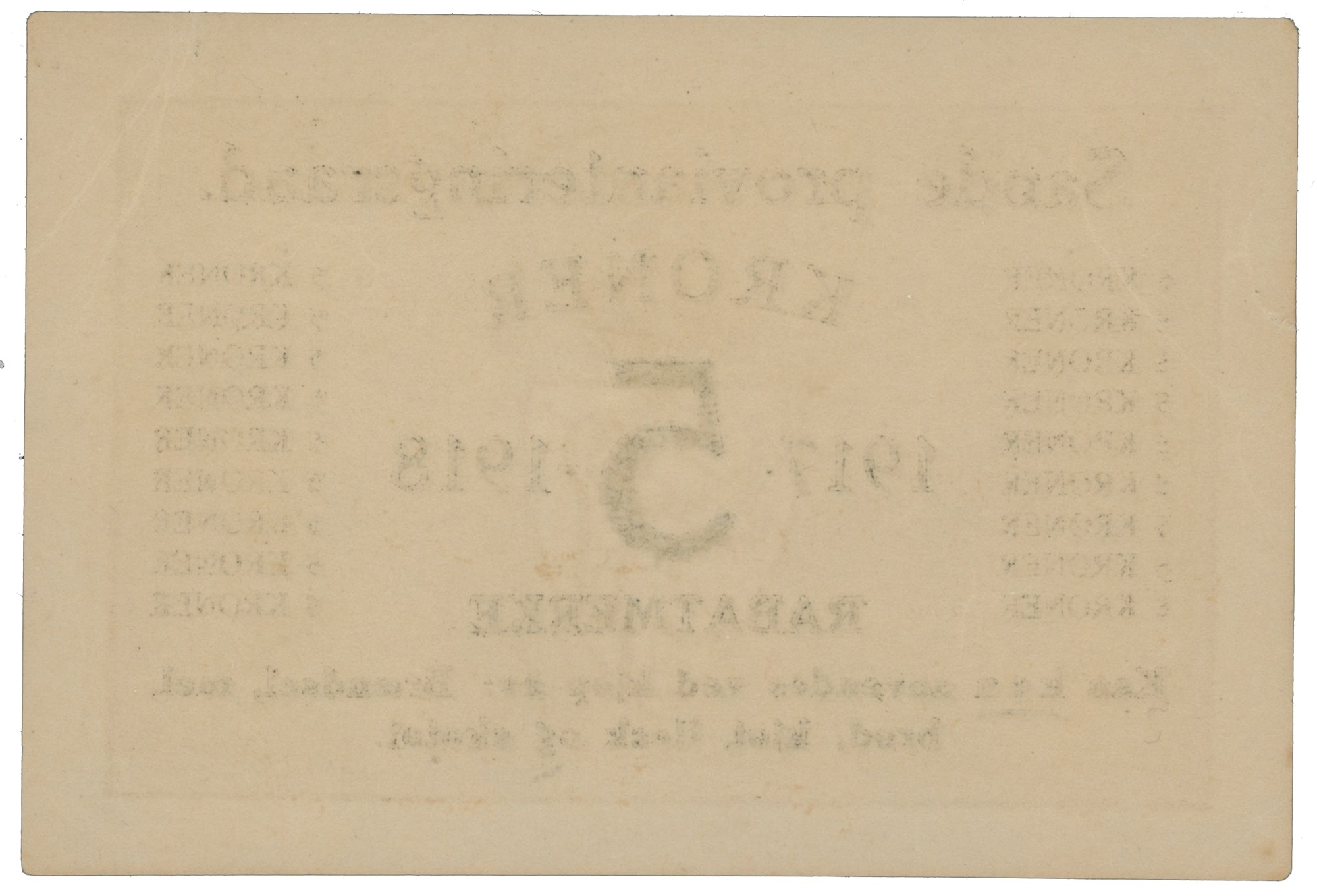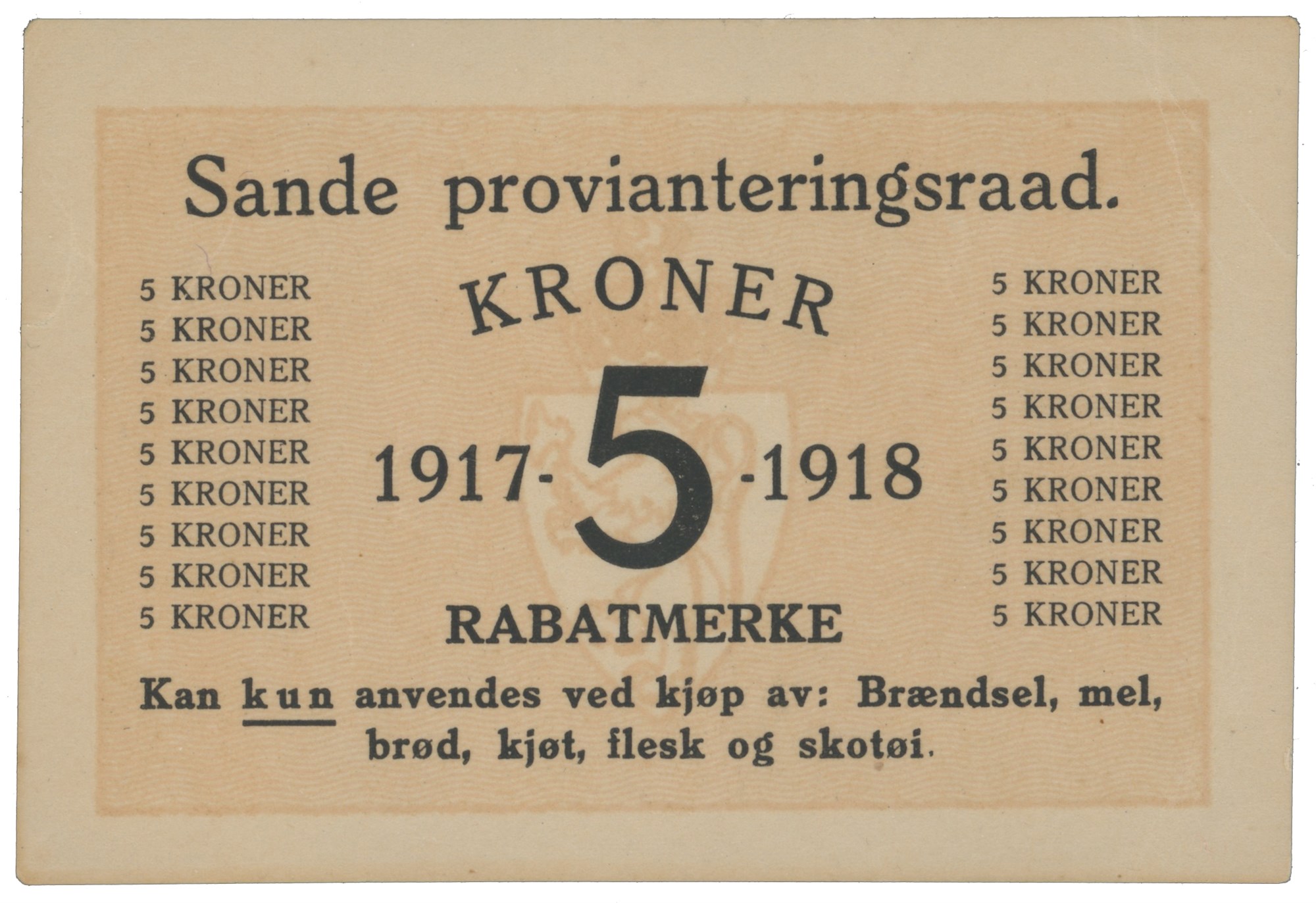 Sande Provianteringsraad. 5 kroner 1917-1918.