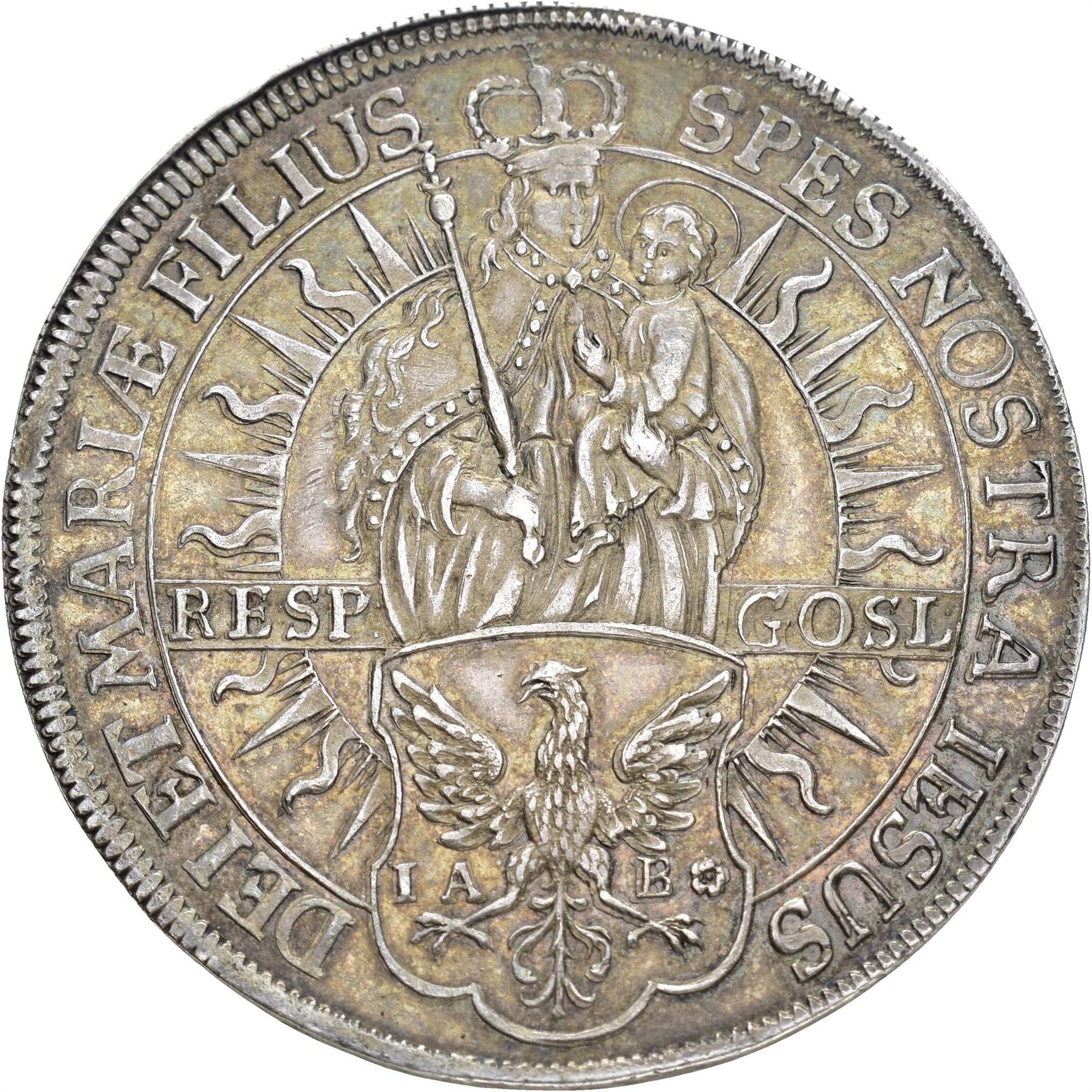 Reichstaler 1705, Goslar. 29,09 g. With title Josef I.Madonna and Child dividing the legend RESP – GOSL; arms below. Lettering SPES NOSTRA IESUS – DEI ET MARIAE FILIUS - Jesus, our hope - son of God and mary.A Reichstaler seldom seen on the market, particularly in this state of preservation