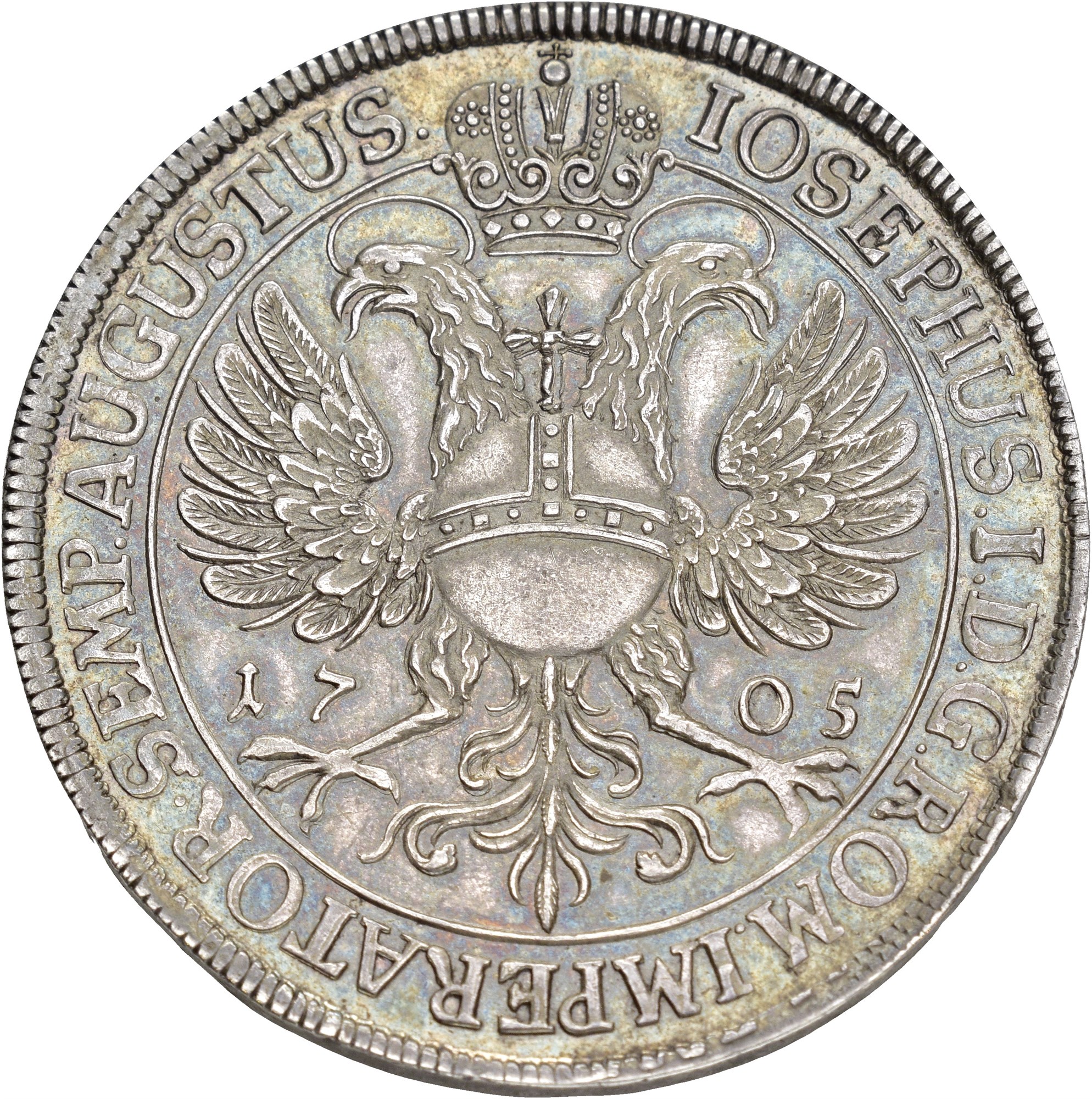Reichstaler 1705, Goslar. 29,09 g. With title Josef I.Madonna and Child dividing the legend RESP – GOSL; arms below. Lettering SPES NOSTRA IESUS – DEI ET MARIAE FILIUS - Jesus, our hope - son of God and mary.A Reichstaler seldom seen on the market, particularly in this state of preservation